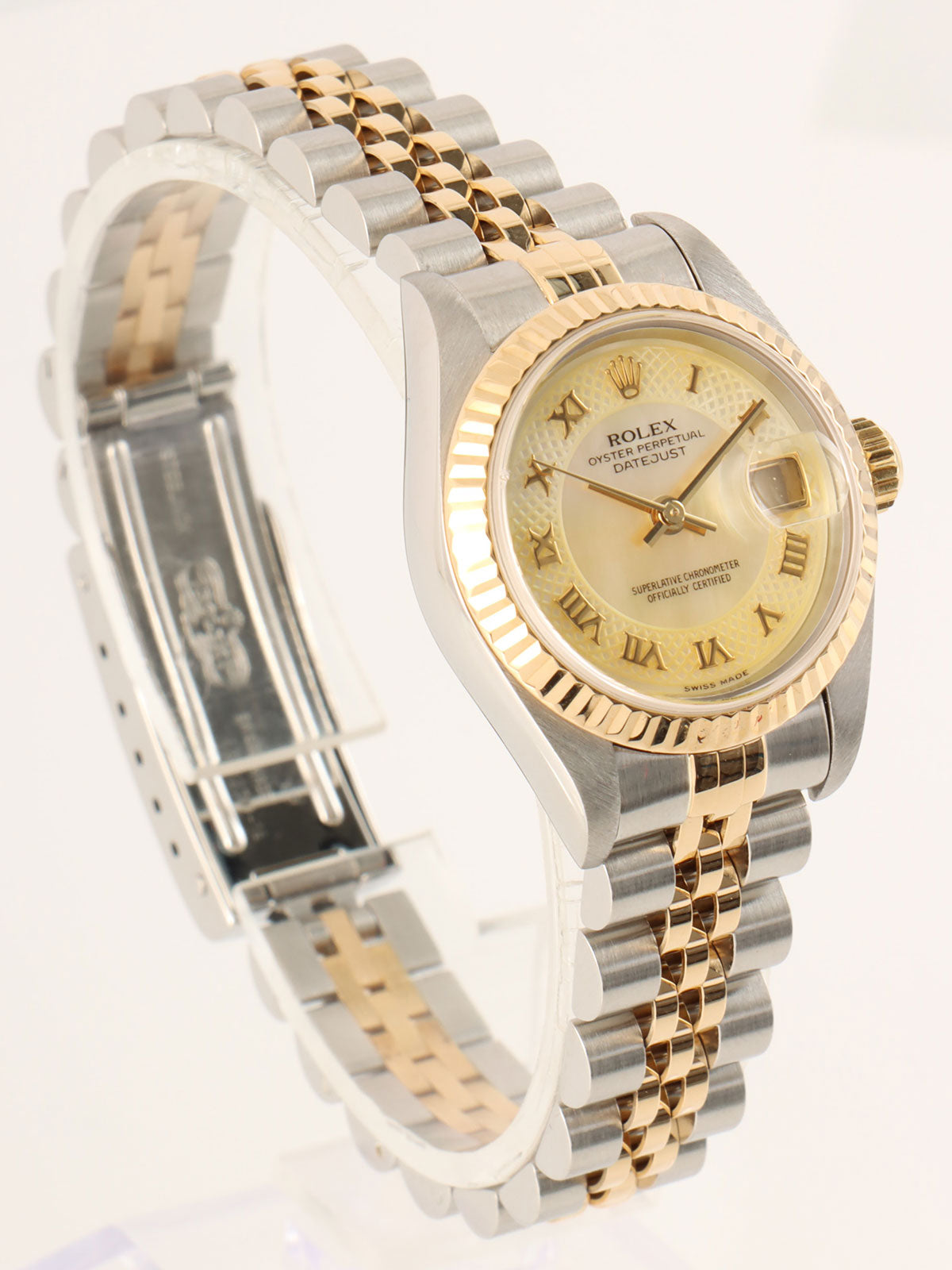 1998-1999 年蚝式恒动日历型腕表,银/金/贝壳黄