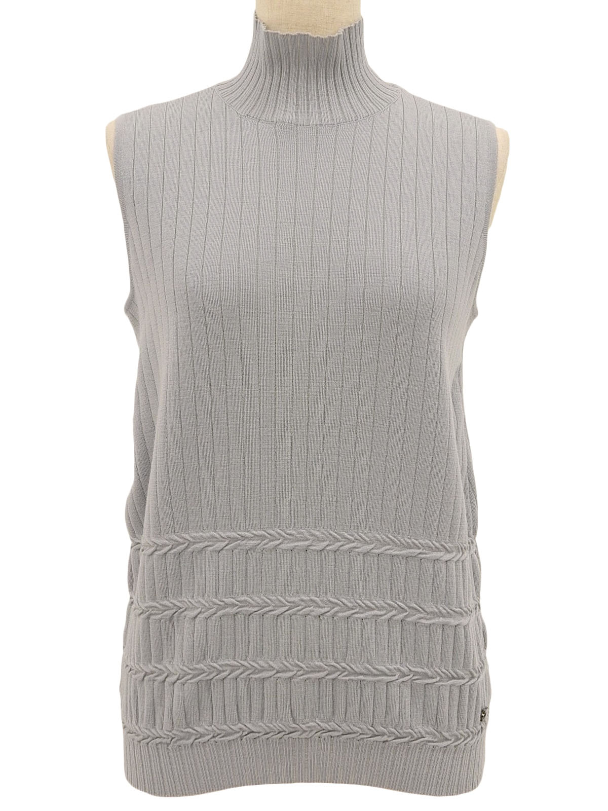 灰色高领 Gancini Plate 无袖针织上衣