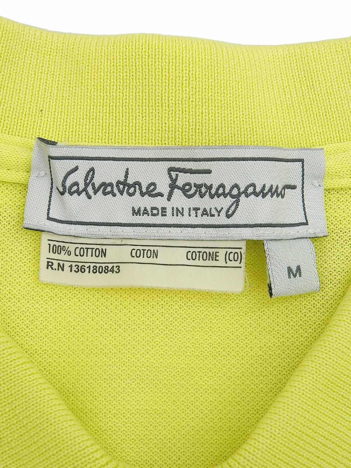Gancini 刺绣半拉链 polo 衫,亮黄色