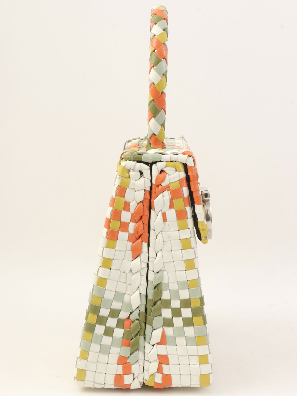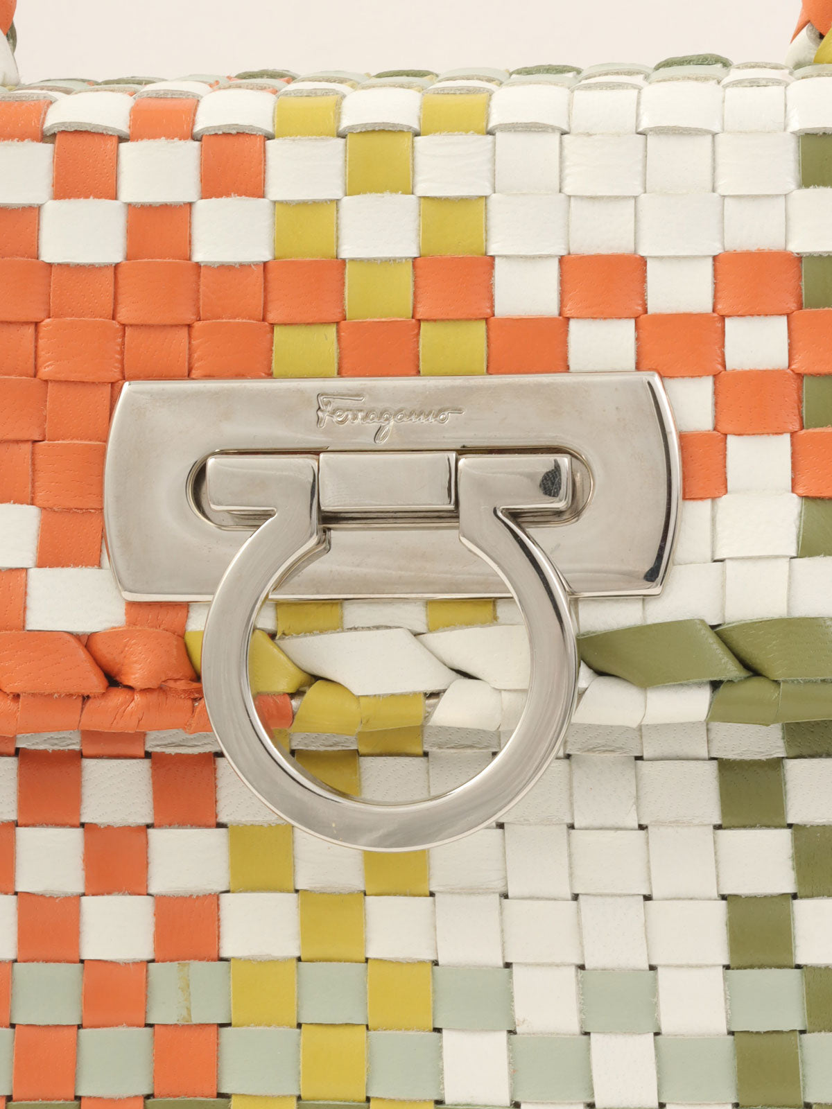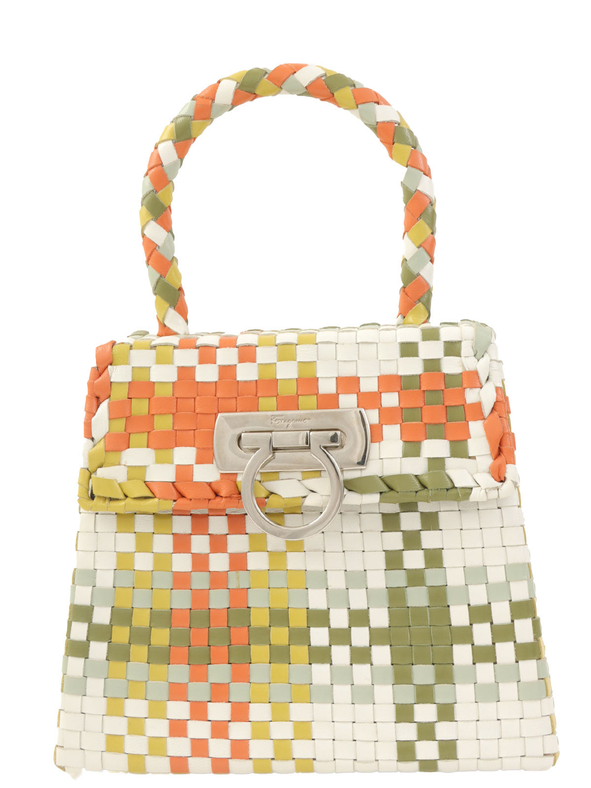 Intrecciato Gancini 橙色/绿色/多色盘形手提包