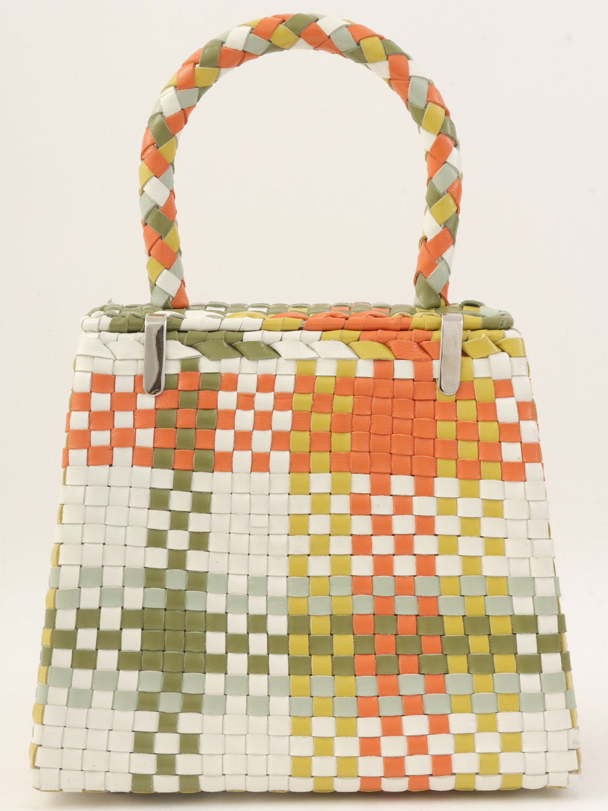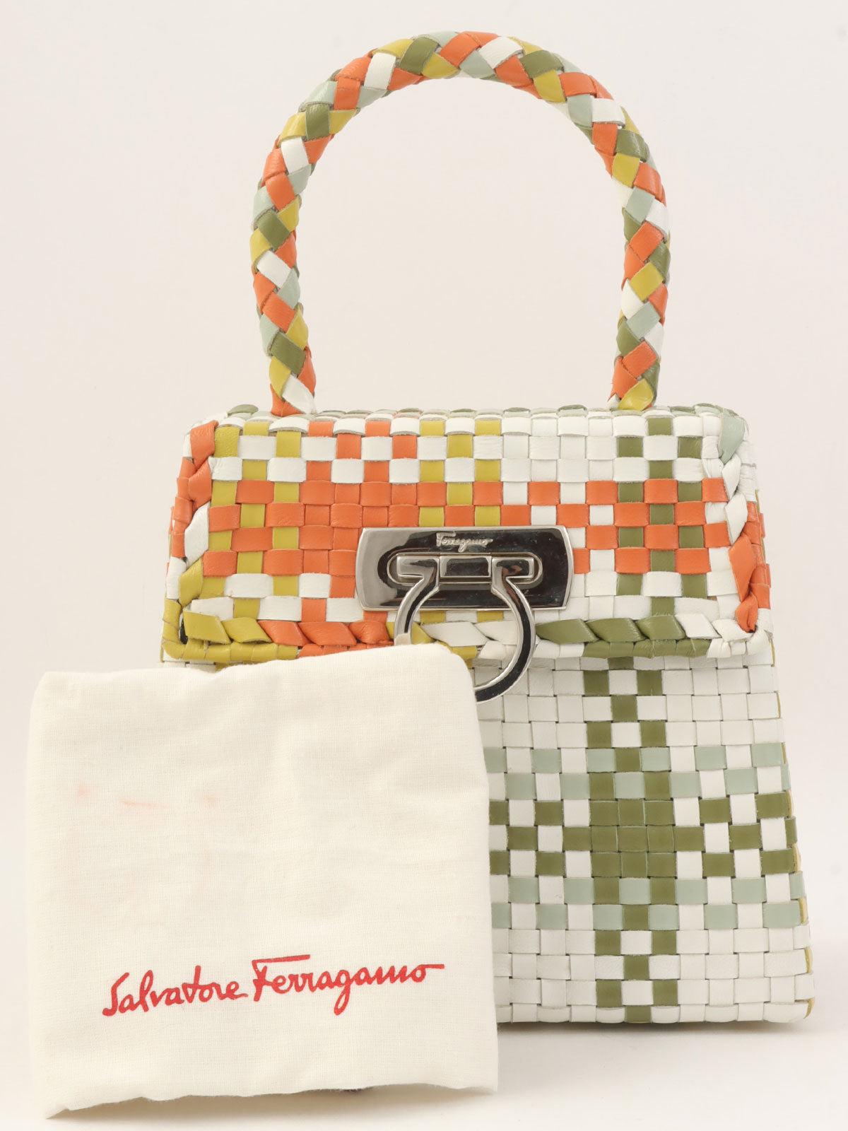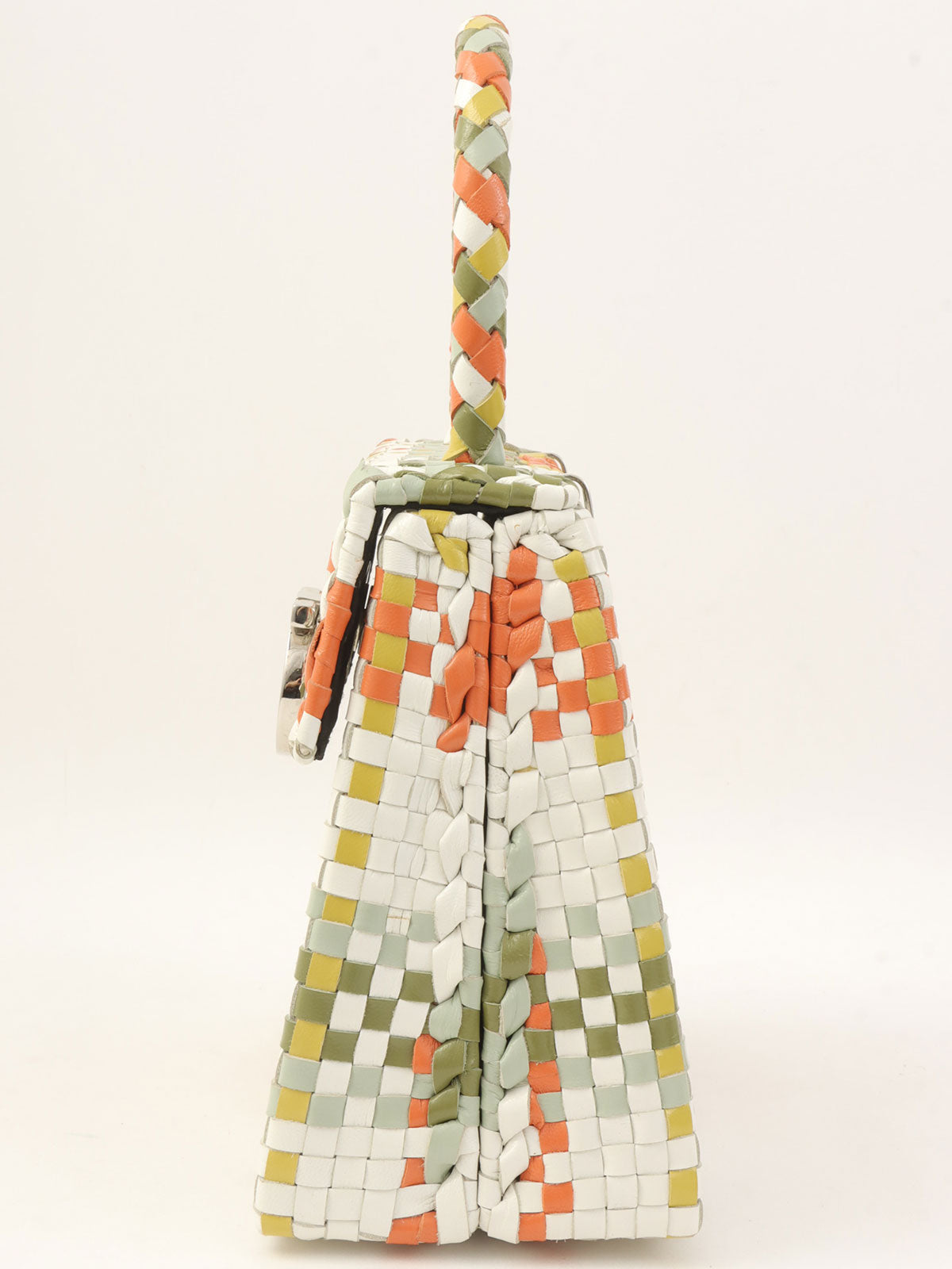 Intrecciato Gancini 橙色/绿色/多色盘形手提包
