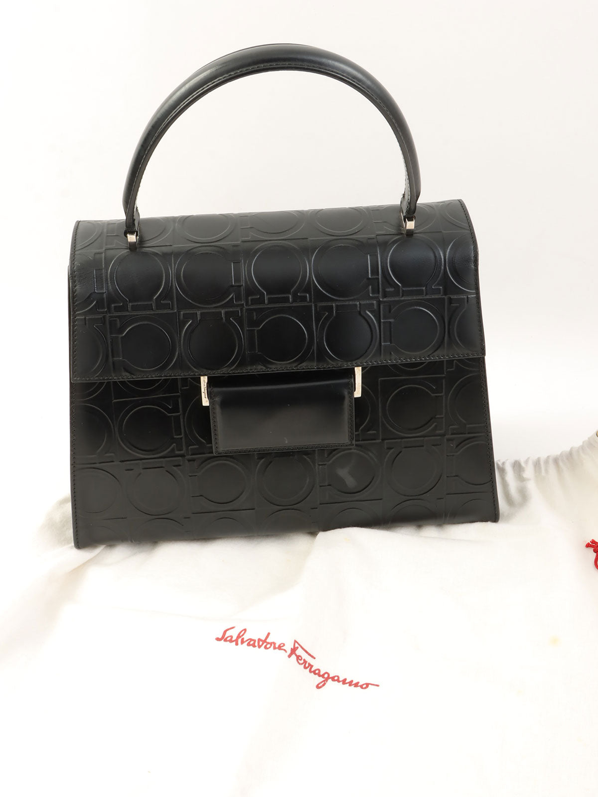 黑色 Gancini 图案手提包