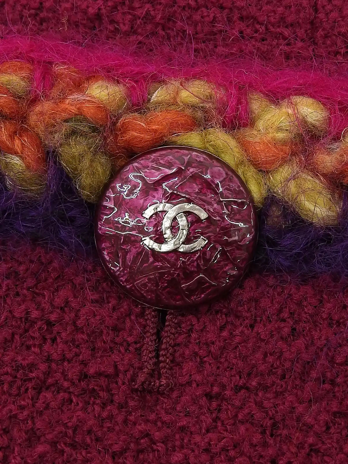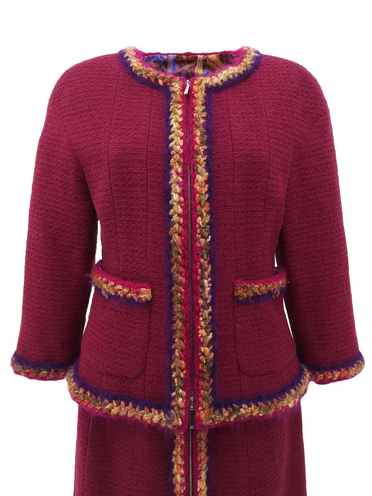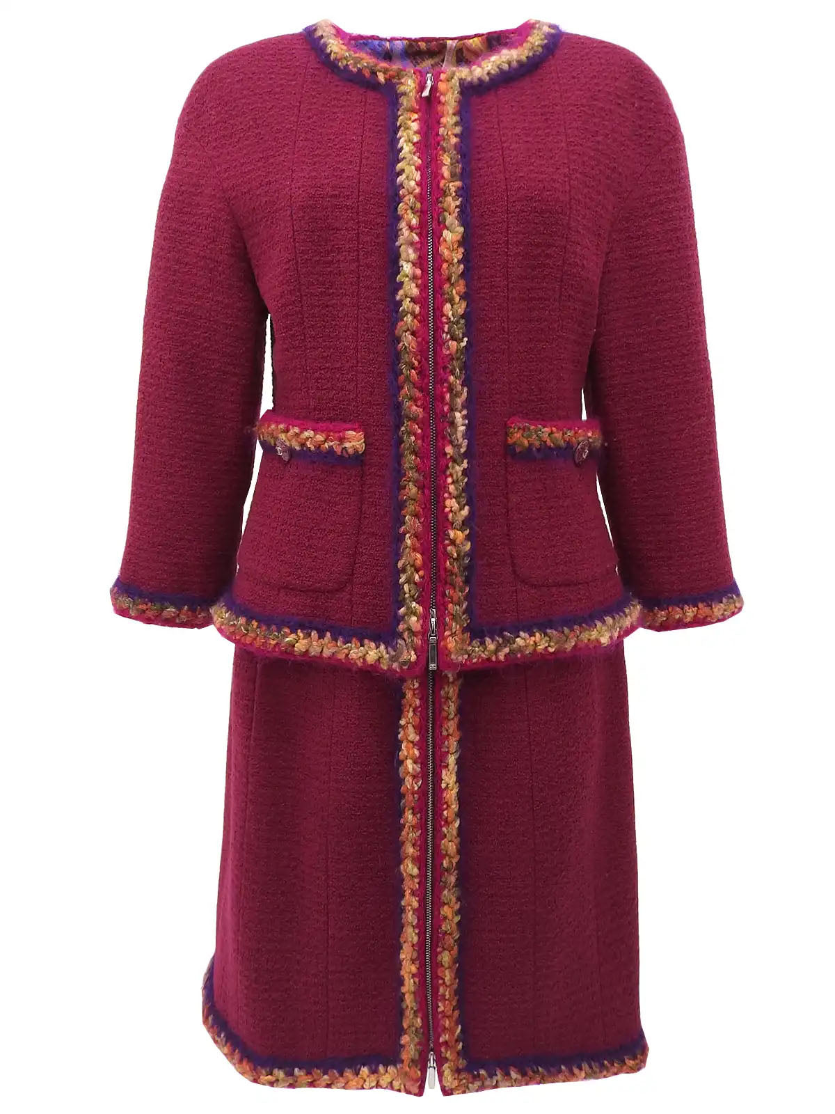 羊毛 CC 标志纽扣设计饰边套装,大丽花紫色/多色