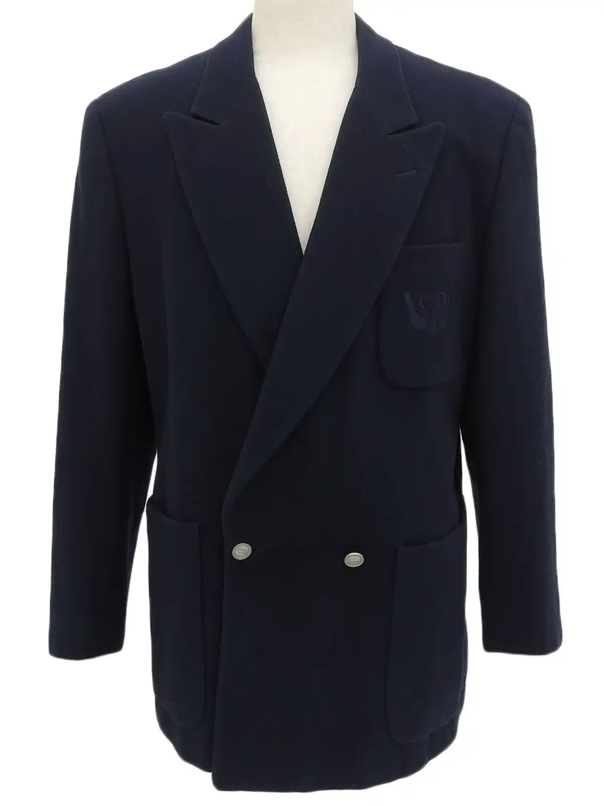 海军蓝羊毛夹克,带刺绣徽标