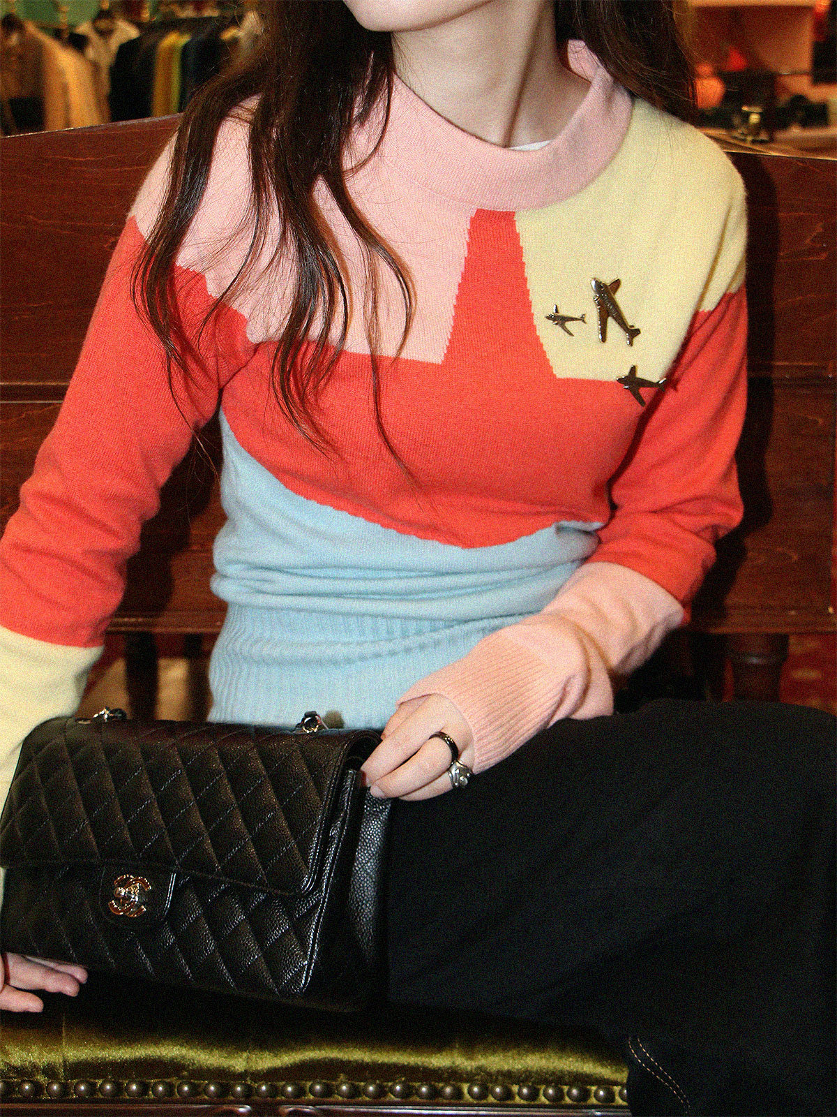 2008 羊绒拼色飞机吊饰针织多色