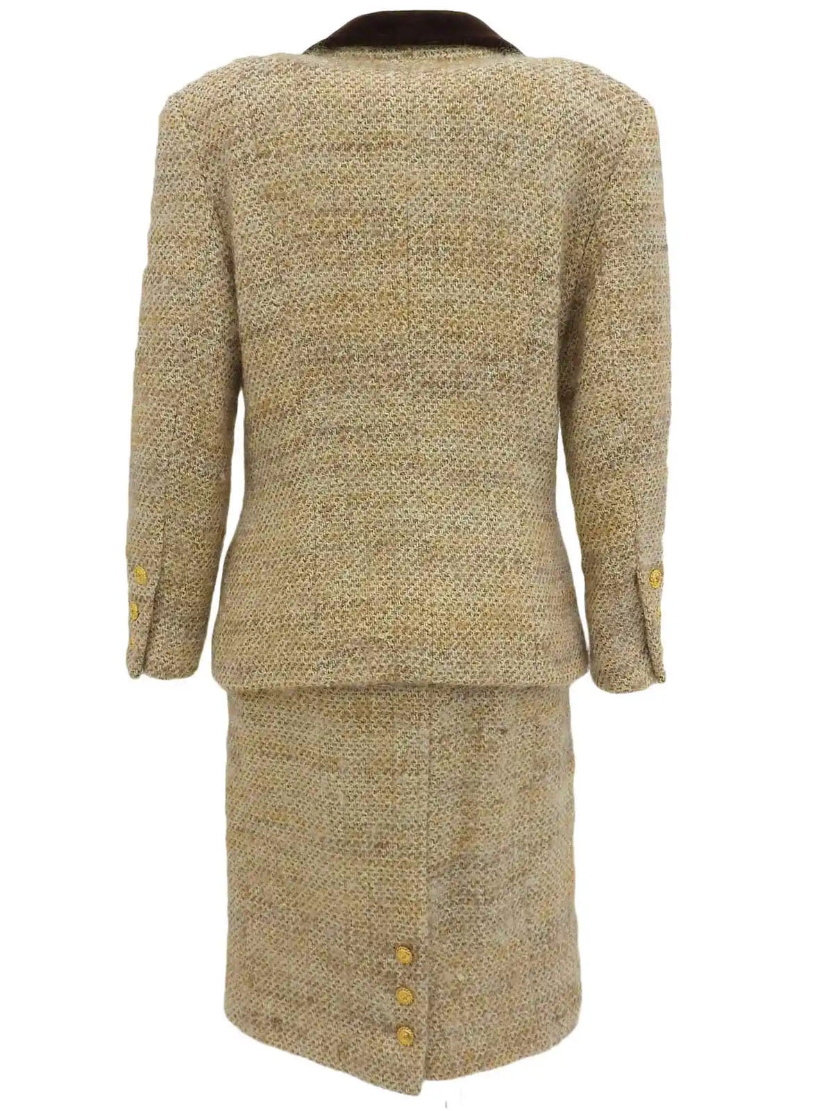 粗花呢和天鹅绒组合 CC 标志,米色/棕色