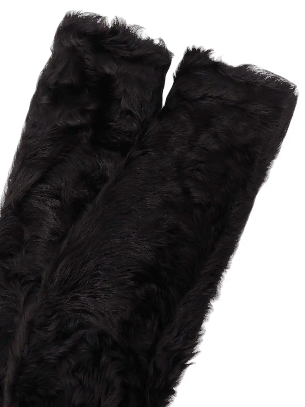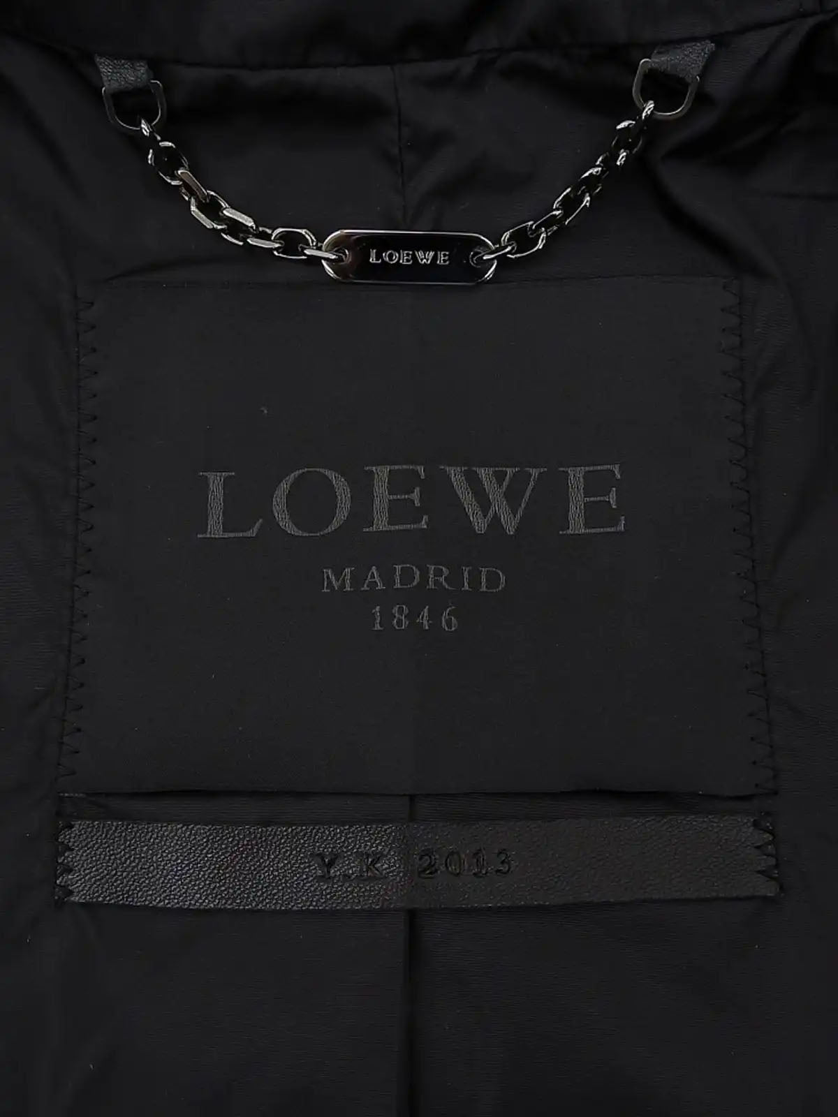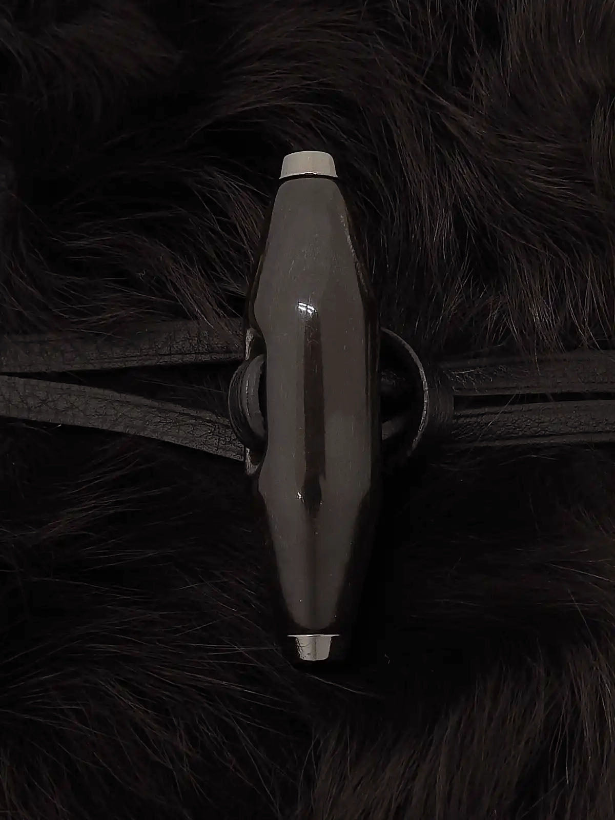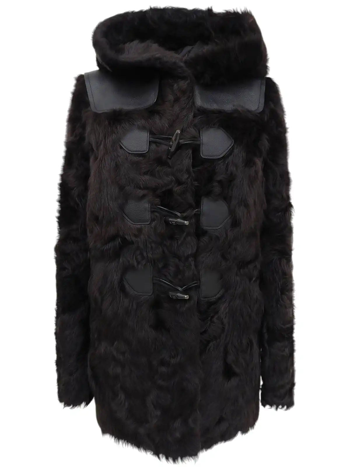 深棕色/黑色毛皮和皮革组合粗呢大衣