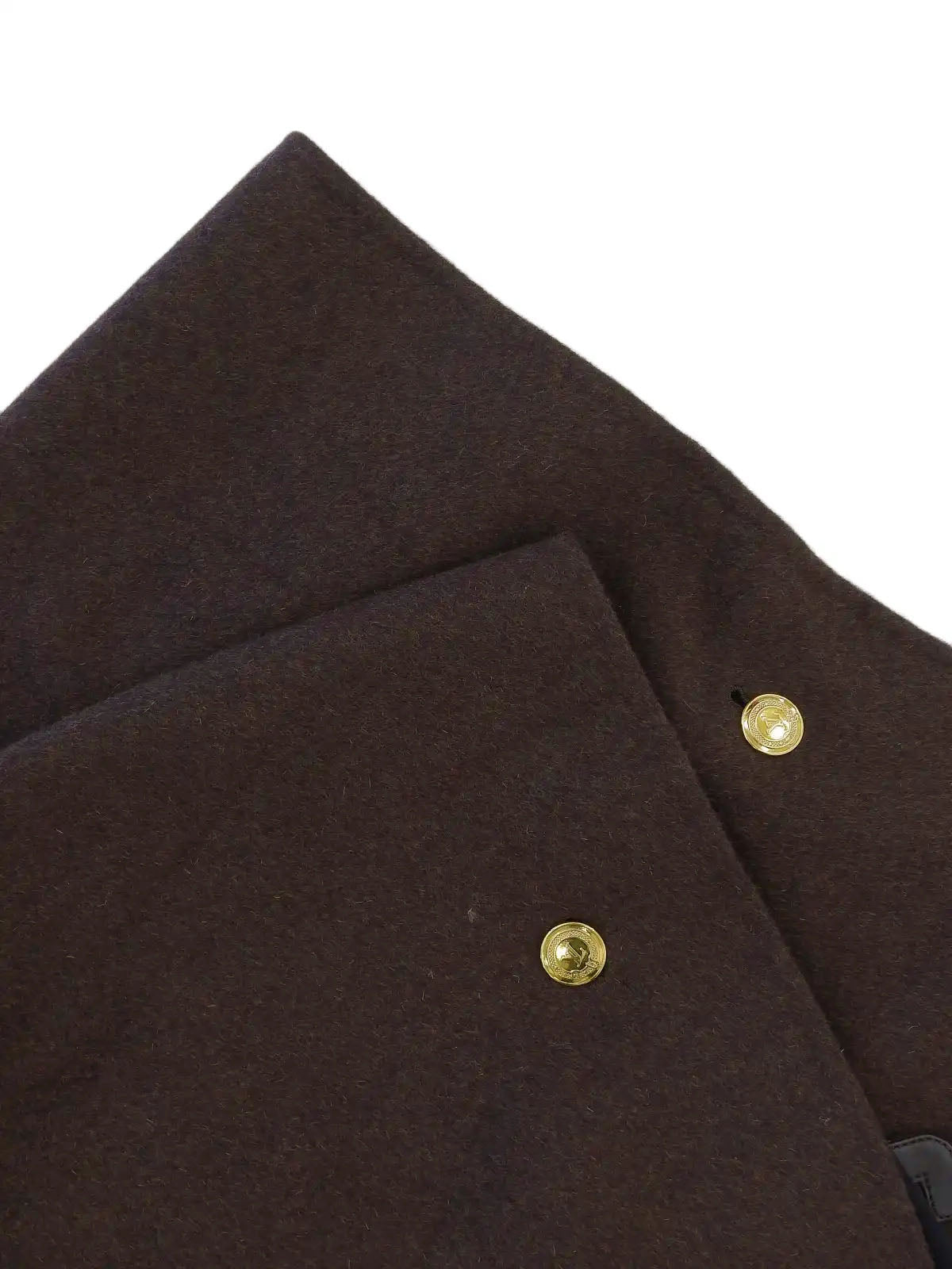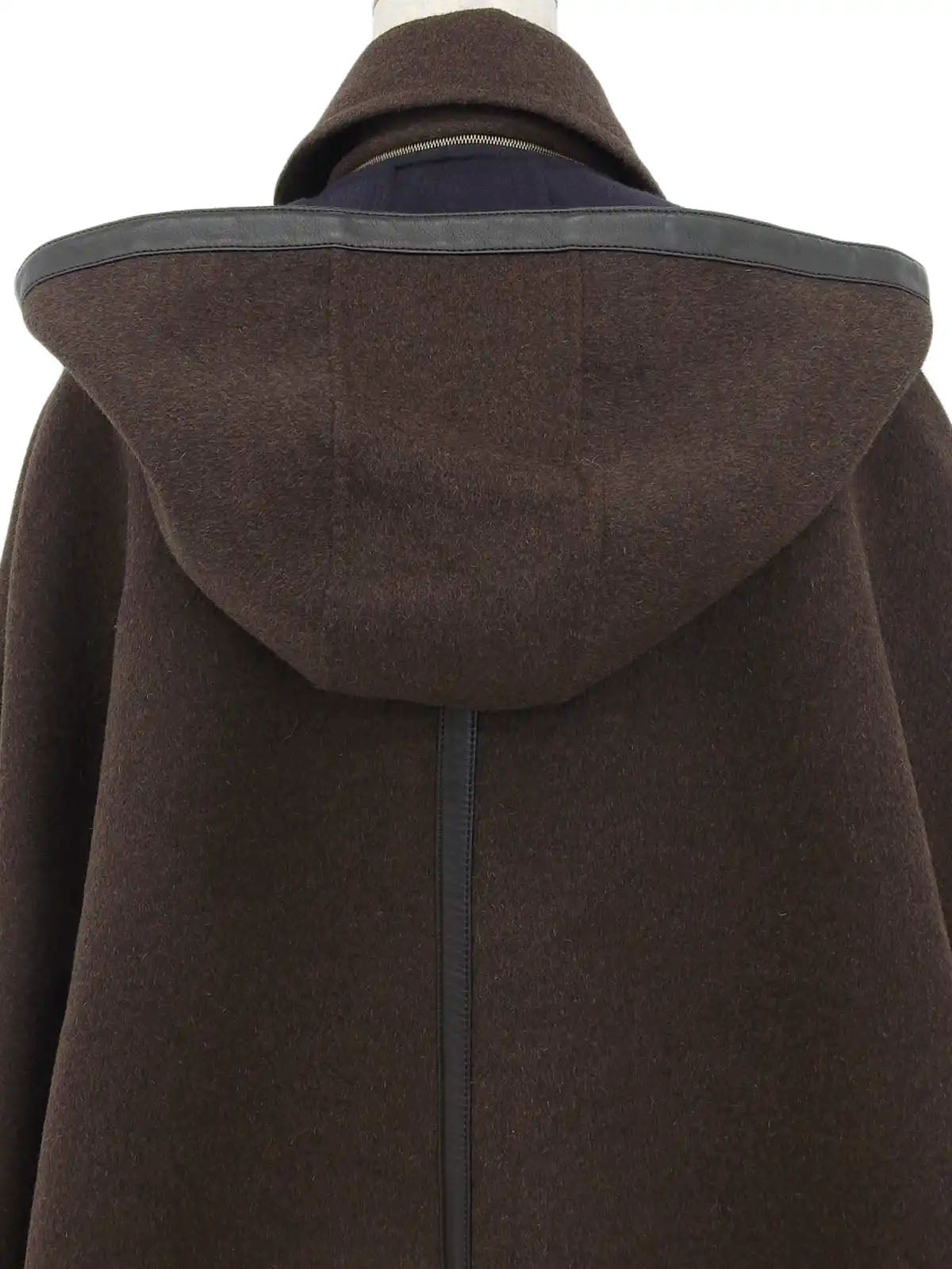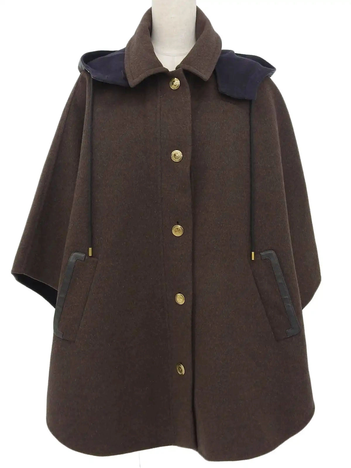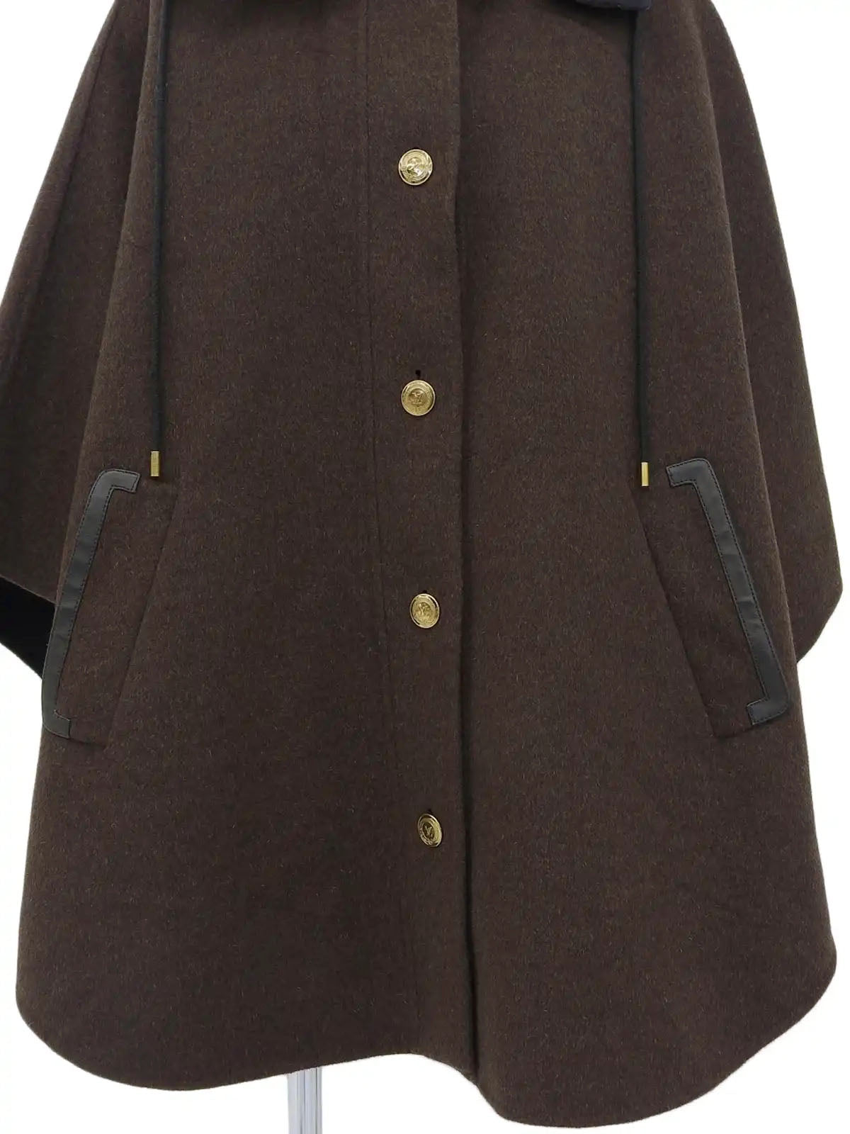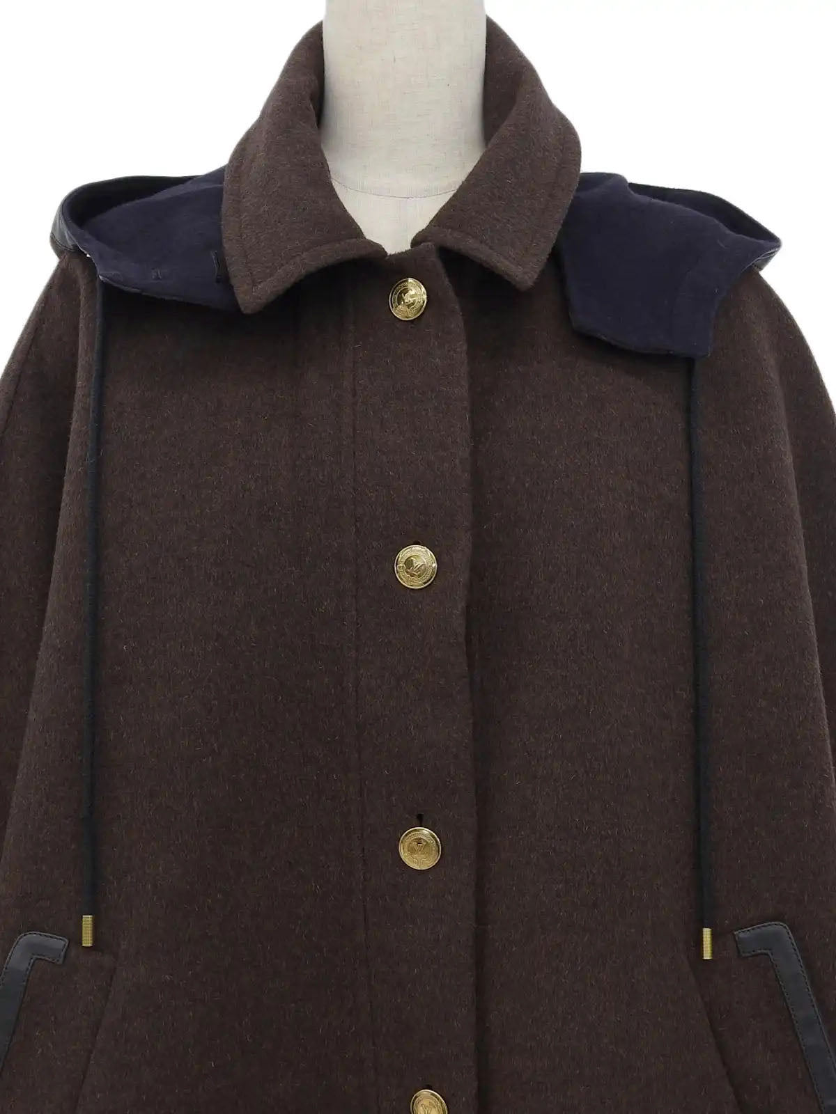 深棕色/海军蓝羊毛徽标纽扣斗篷大衣