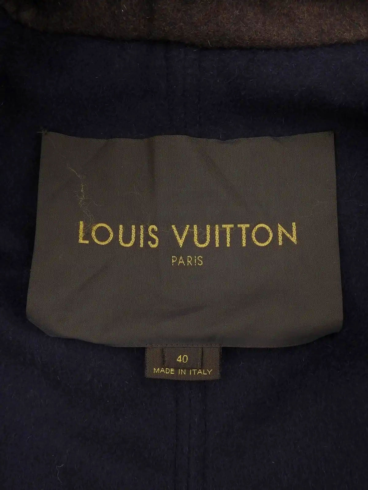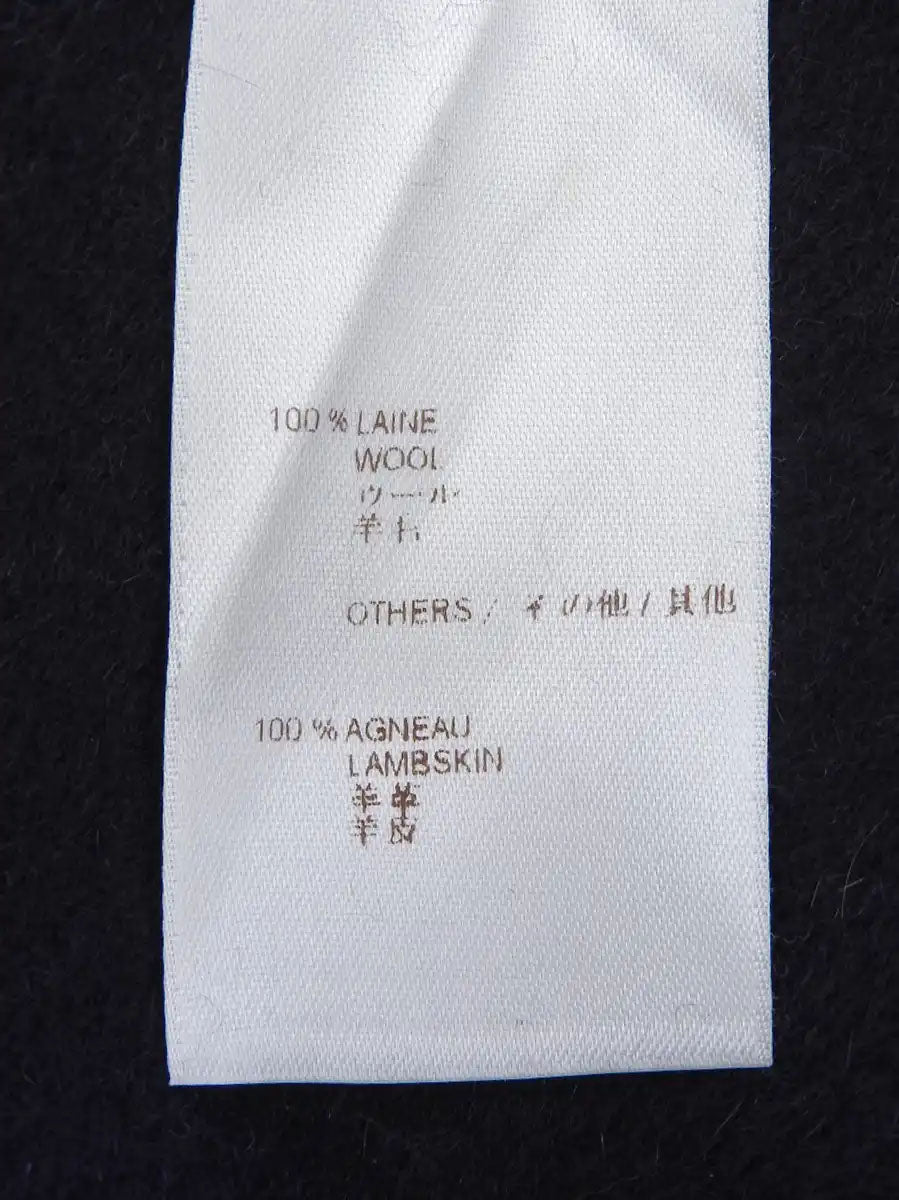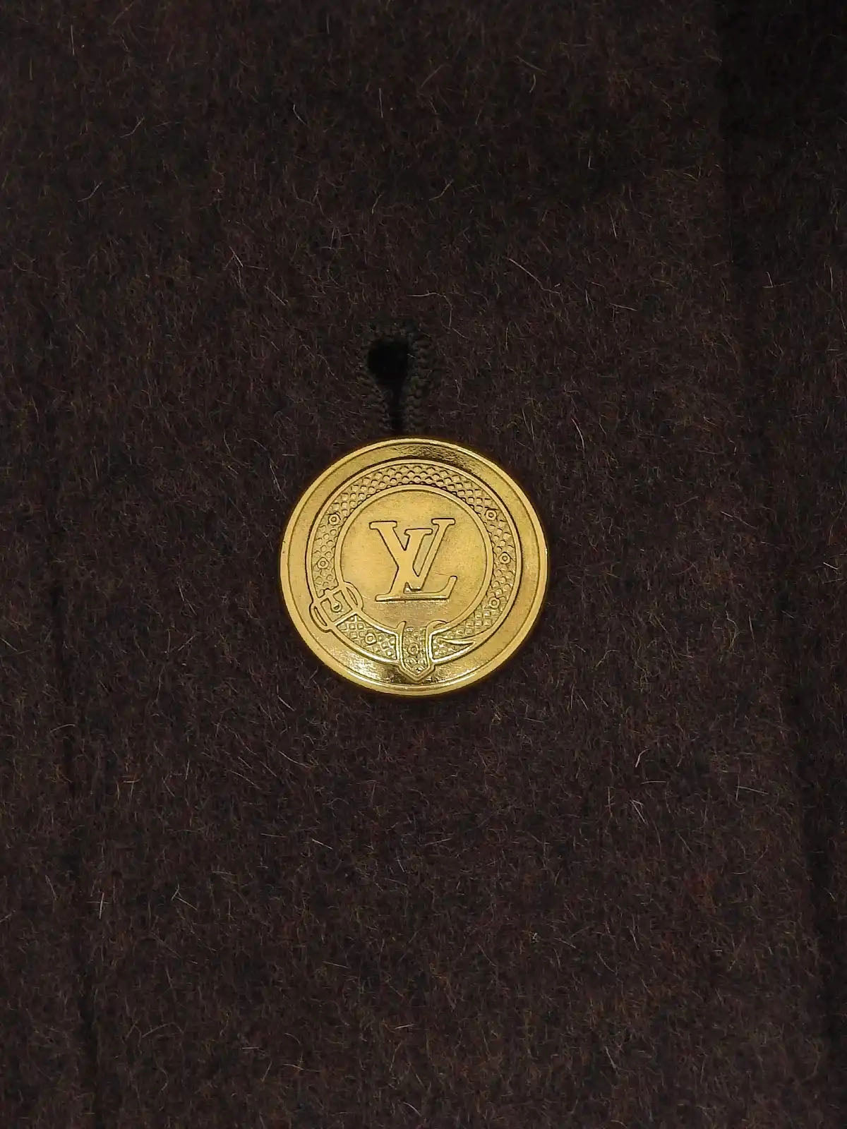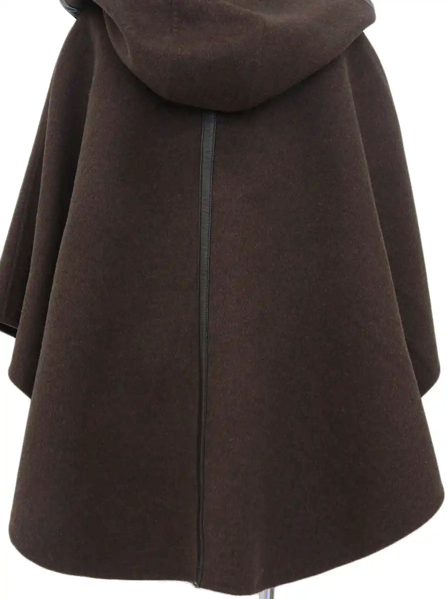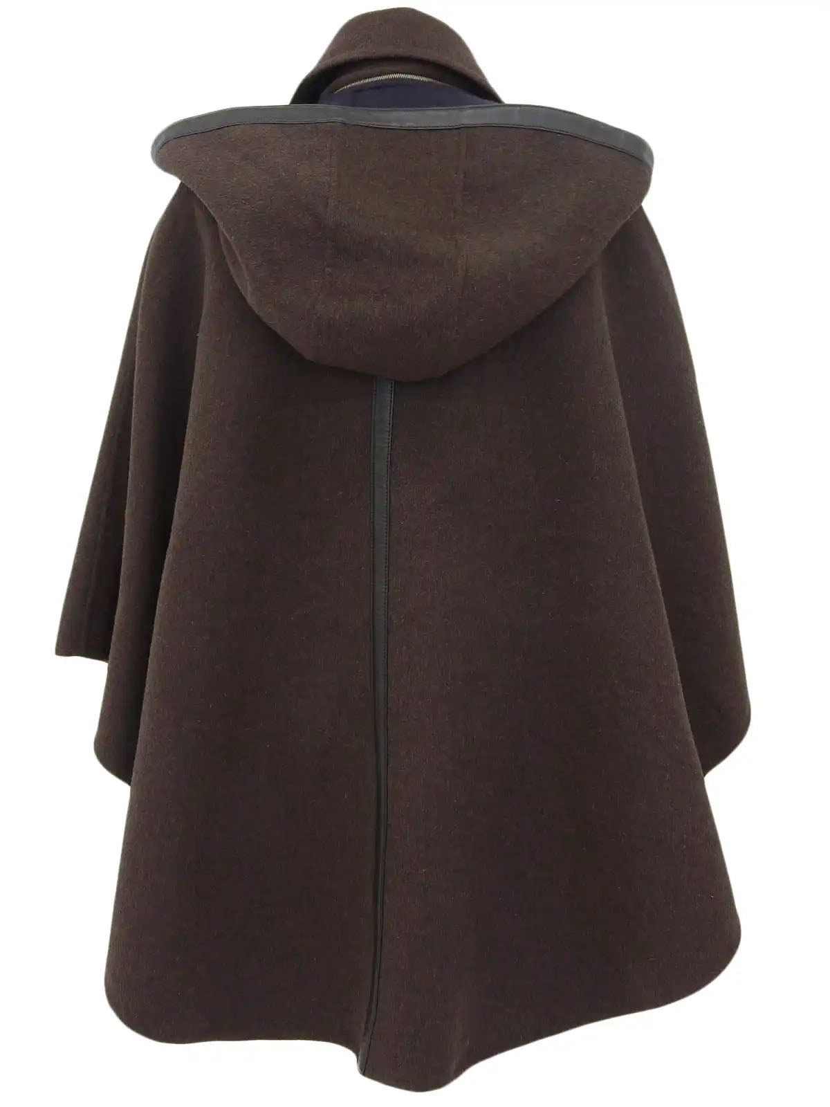 深棕色/海军蓝羊毛徽标纽扣斗篷大衣