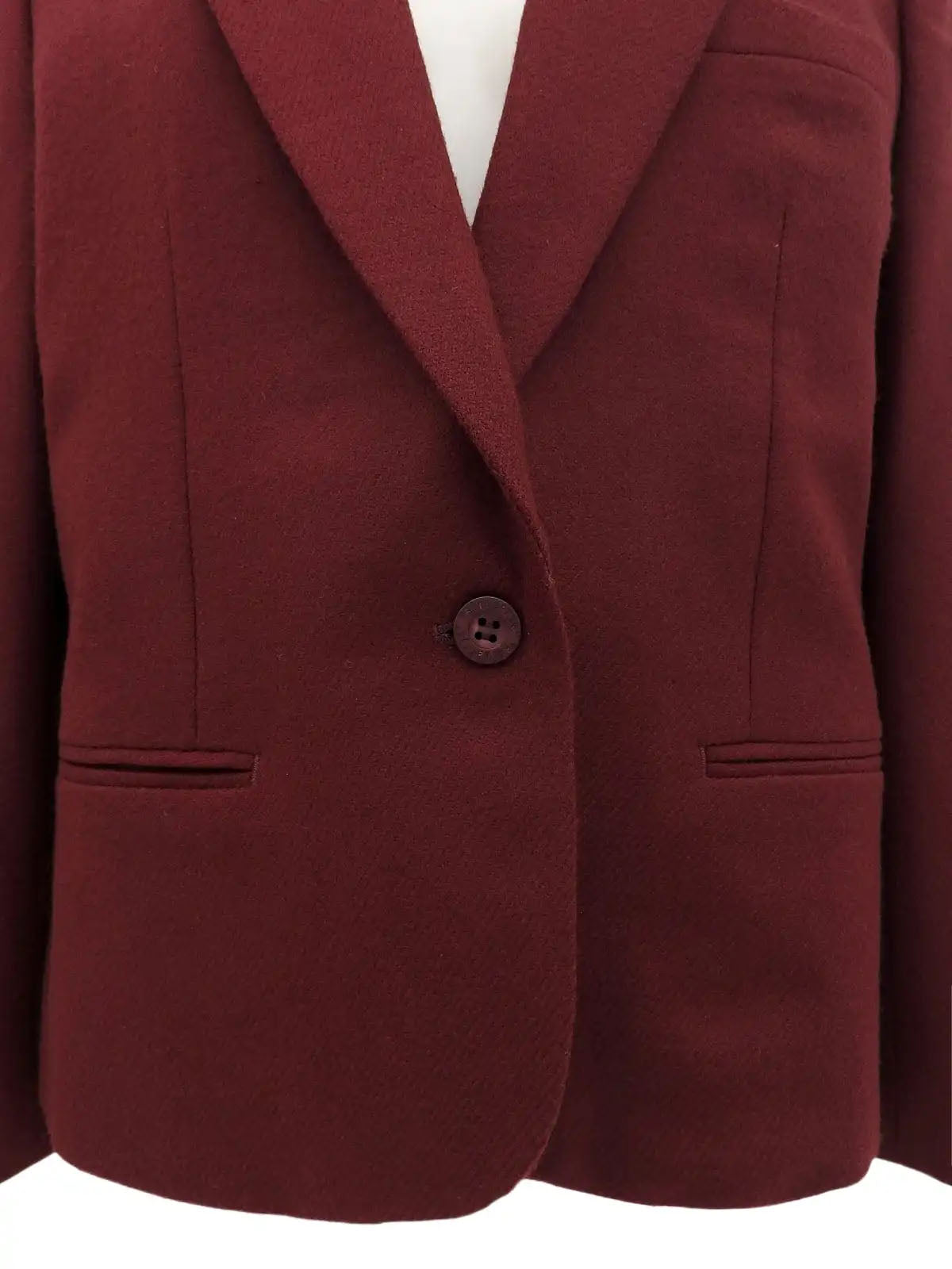 勃艮第红色羊毛徽标纽扣夹克