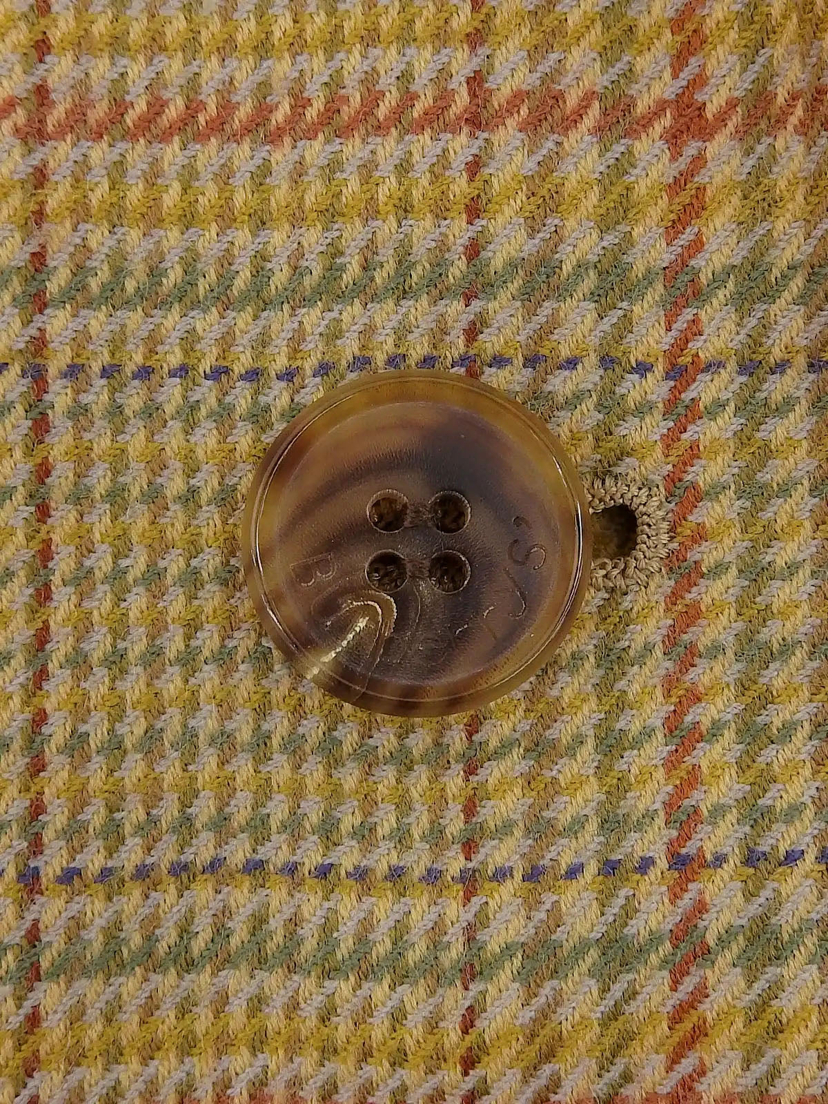 米色/多色羊毛格纹徽标纽扣双排扣夹克