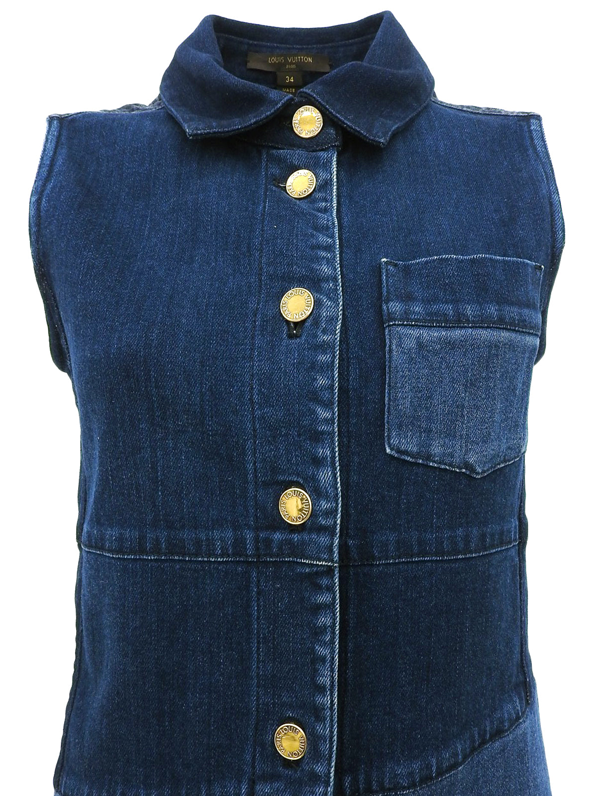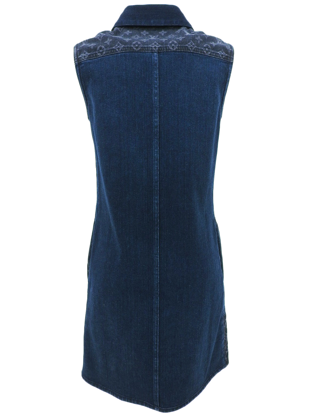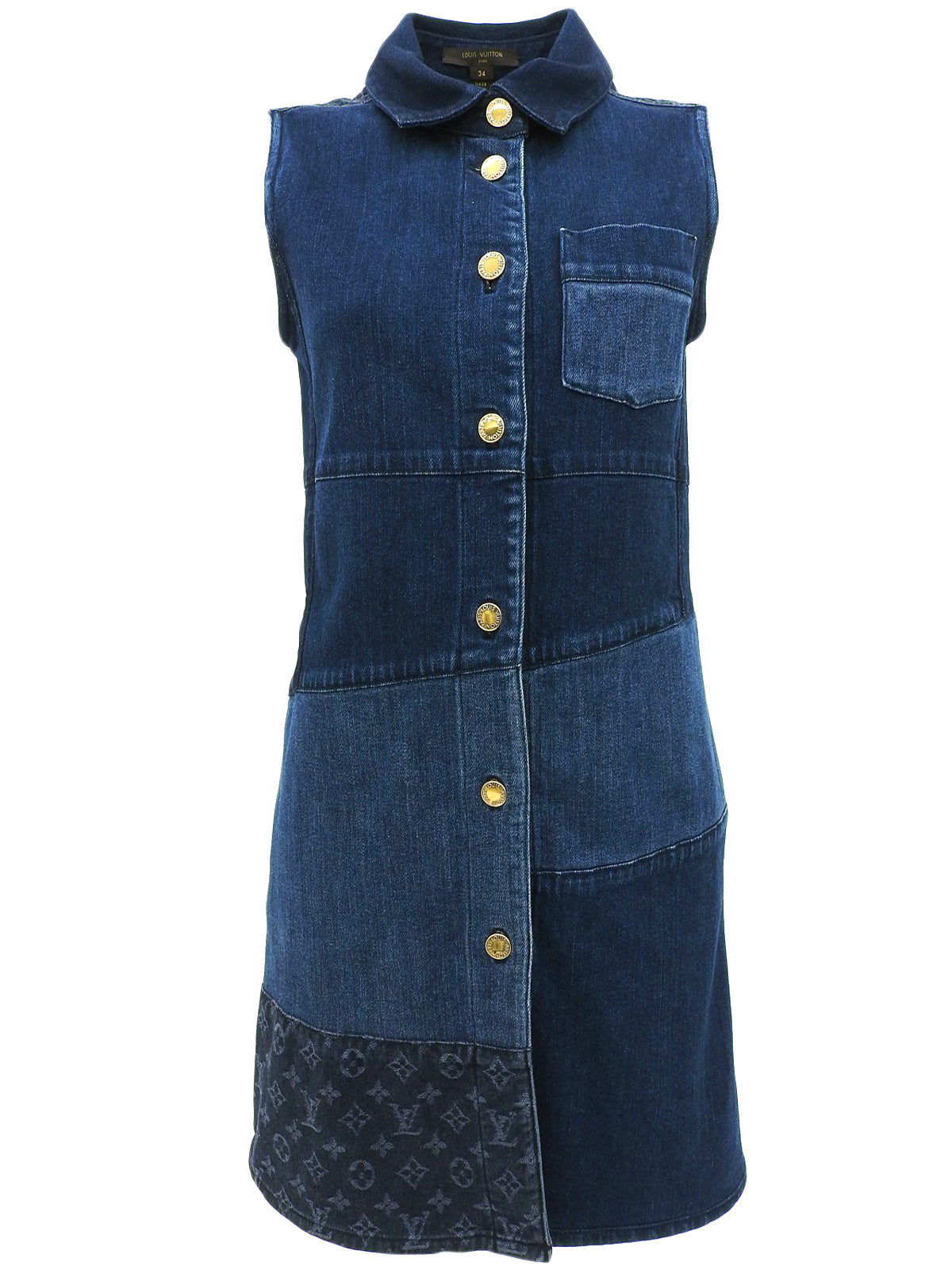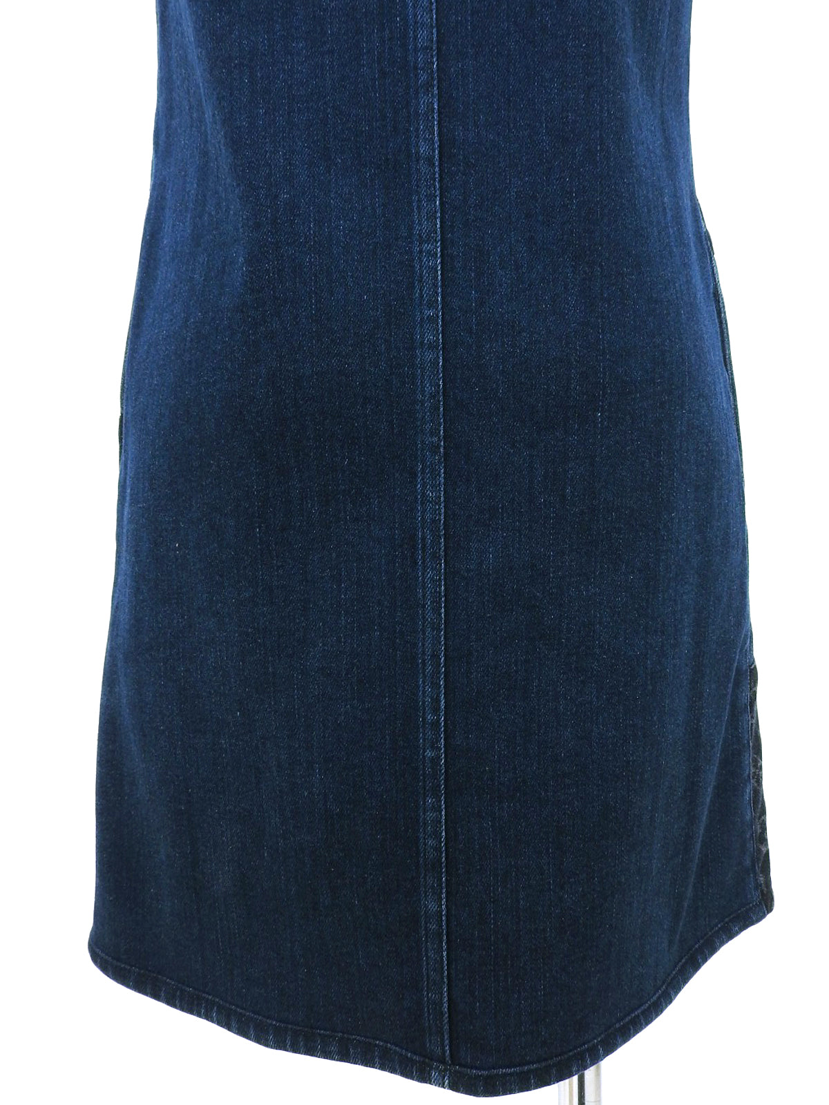 靛蓝/蓝色牛仔字母徽标纽扣无袖连衣裙