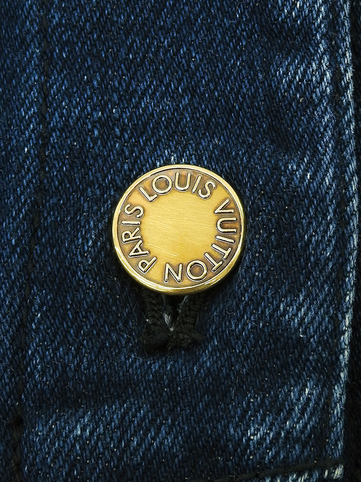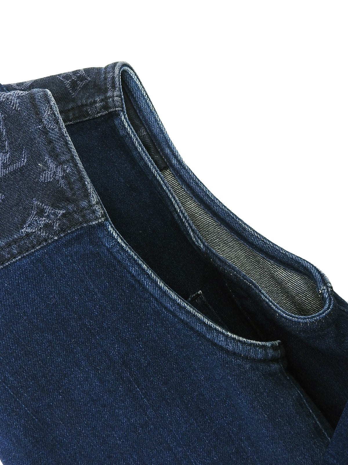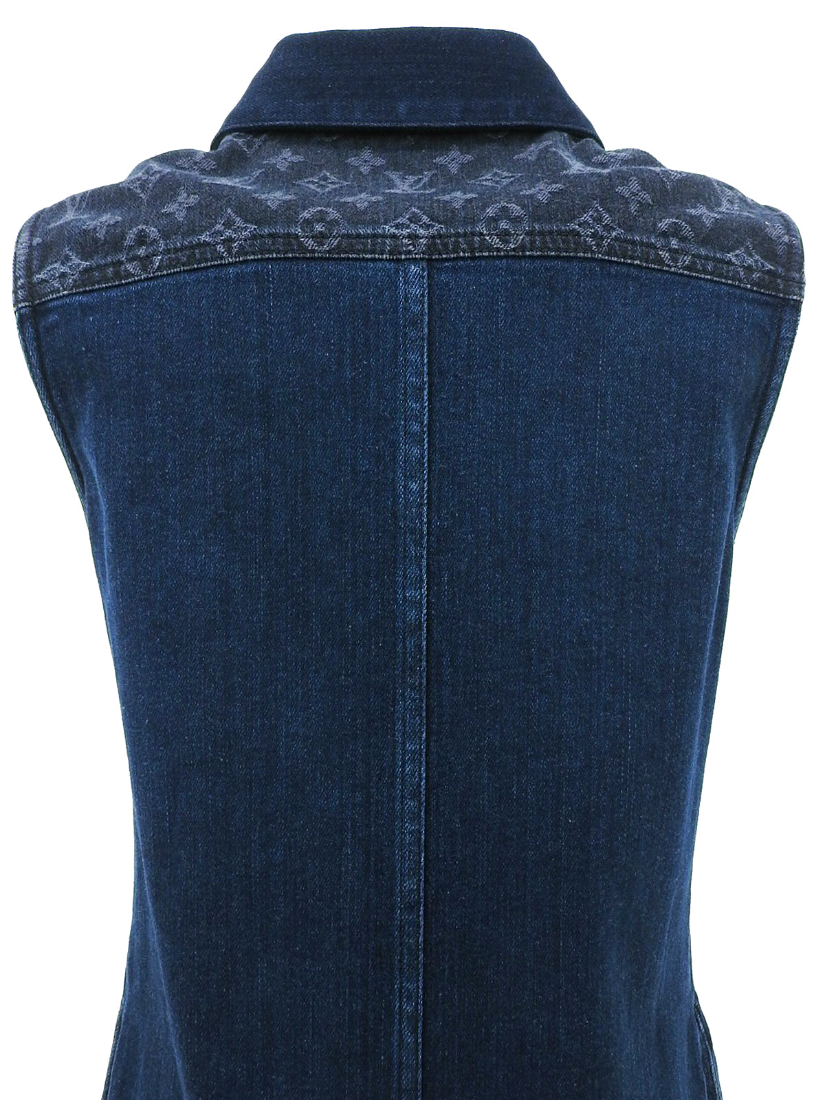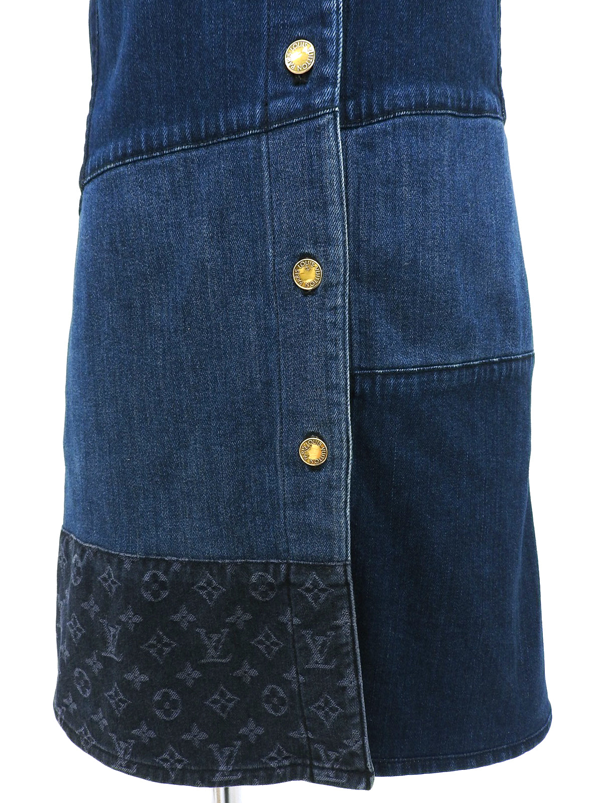靛蓝/蓝色牛仔字母徽标纽扣无袖连衣裙