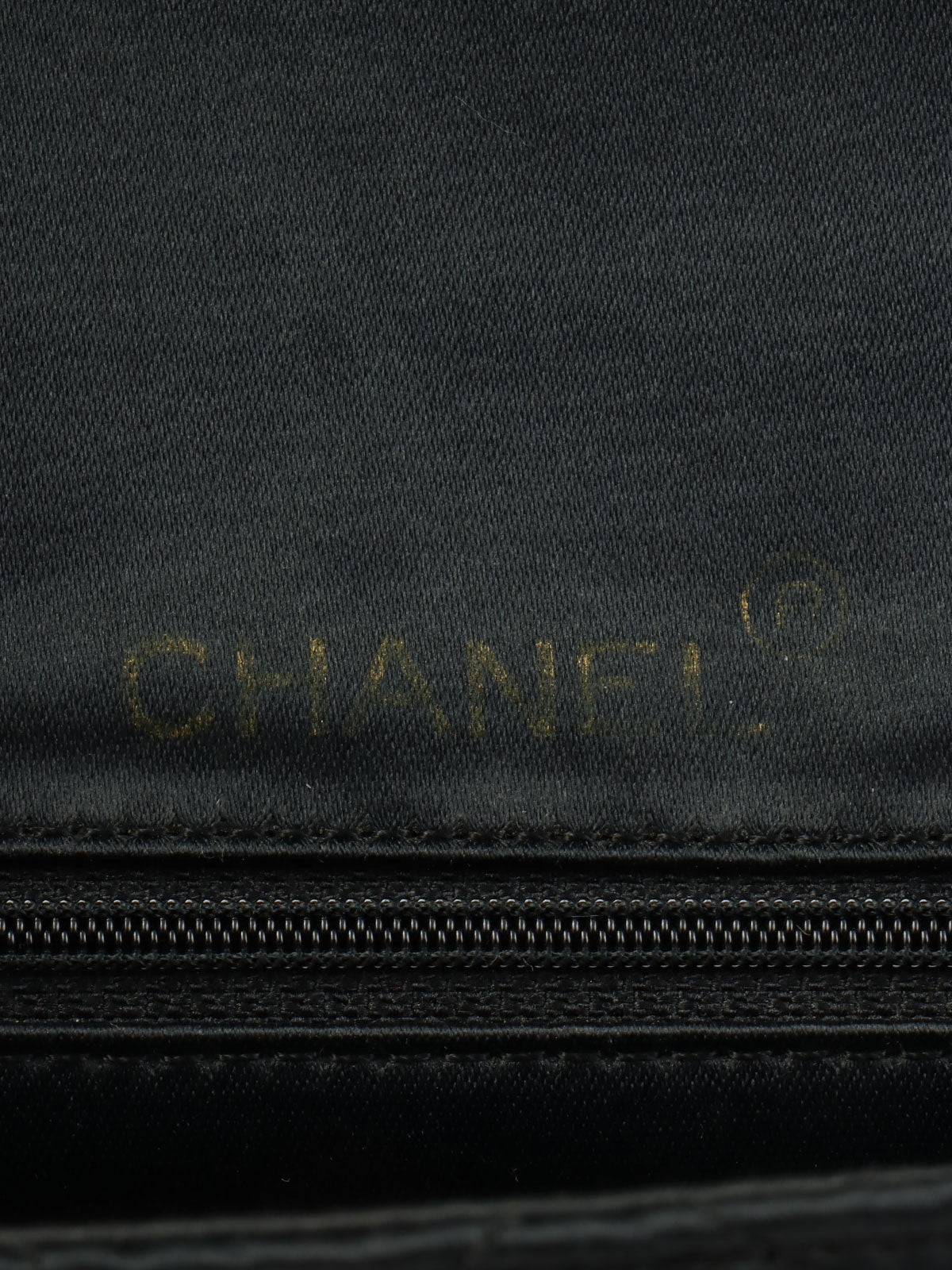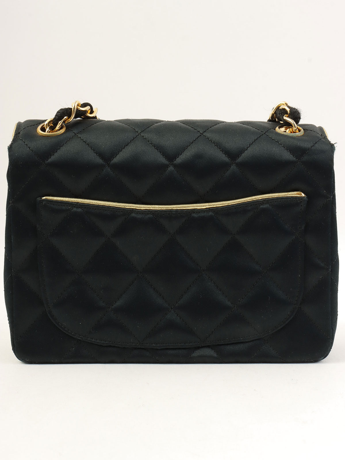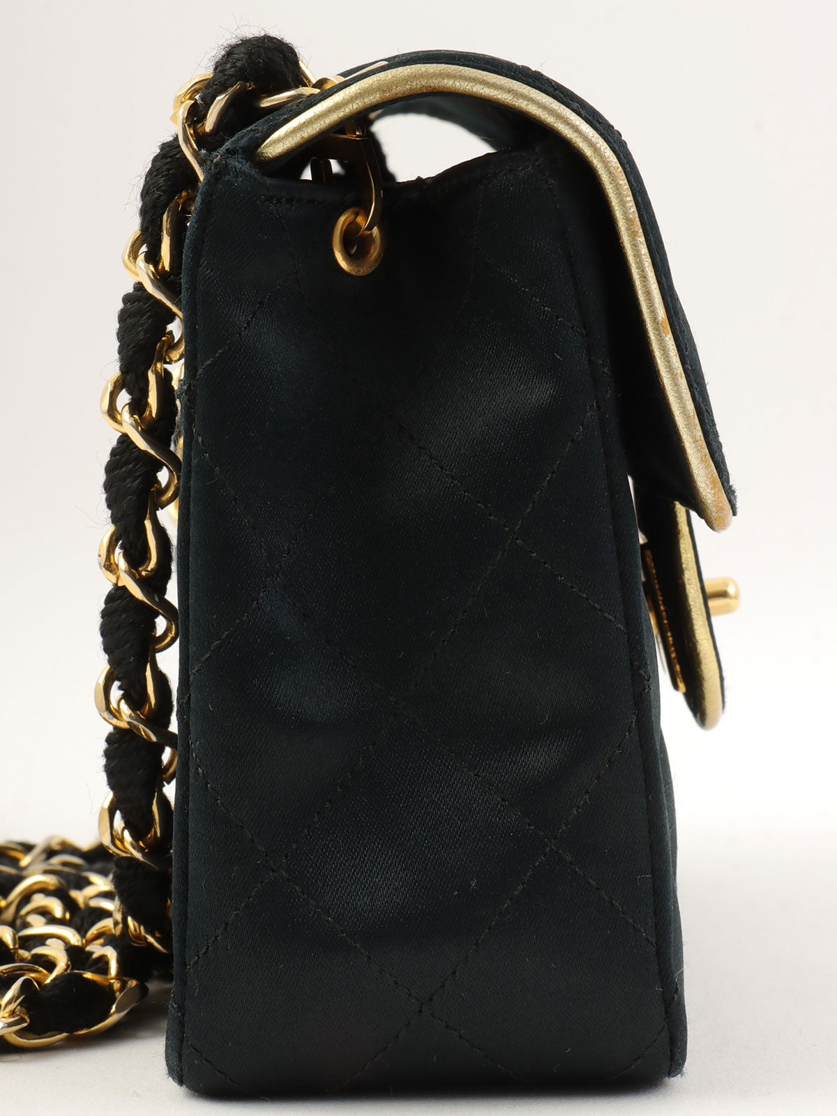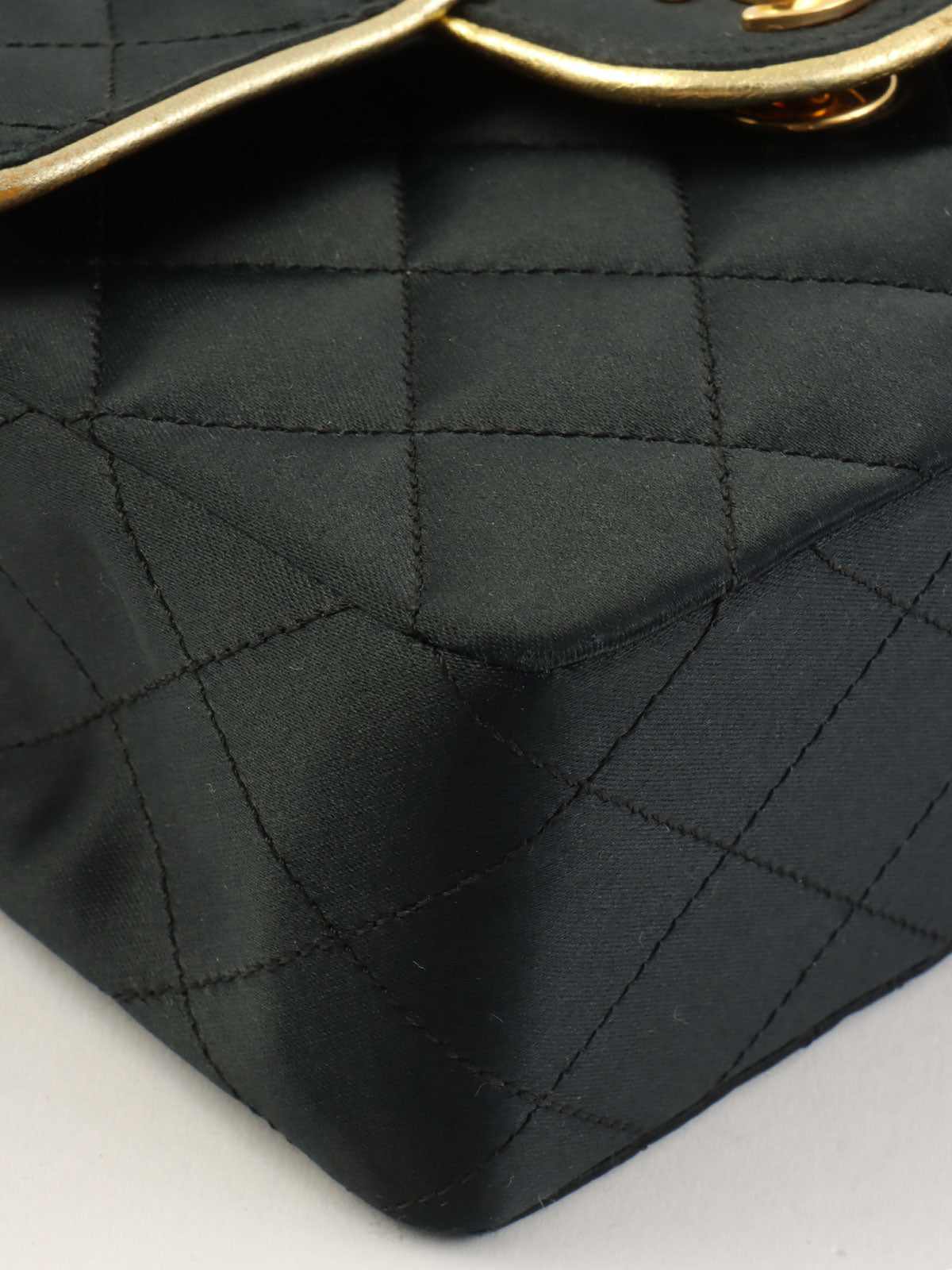 1990 年款丝缎经典翻盖链条包迷你黑/金
