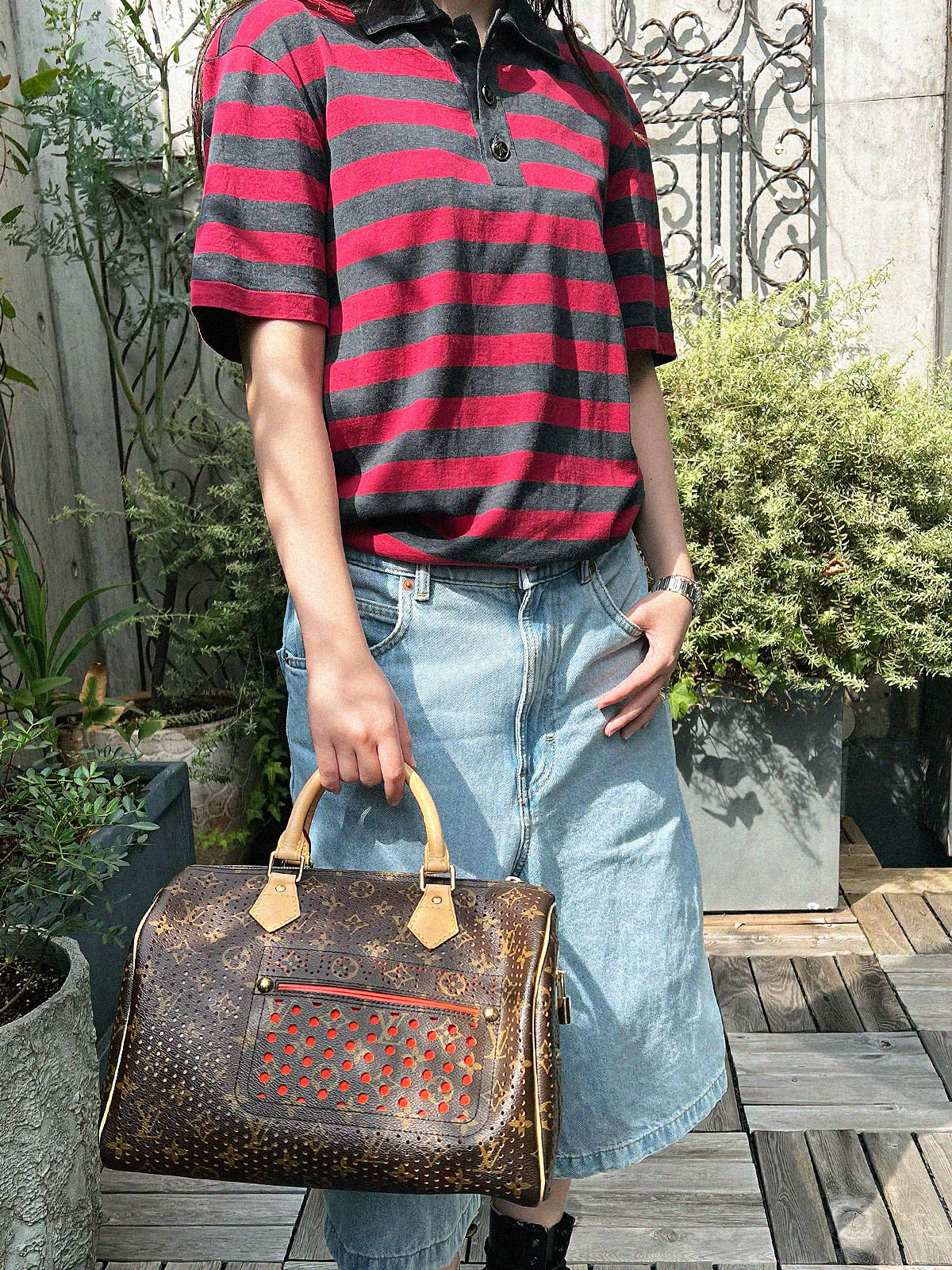 2008 帆布 Monogram PerfoSpeedy 30 棕色/橙色