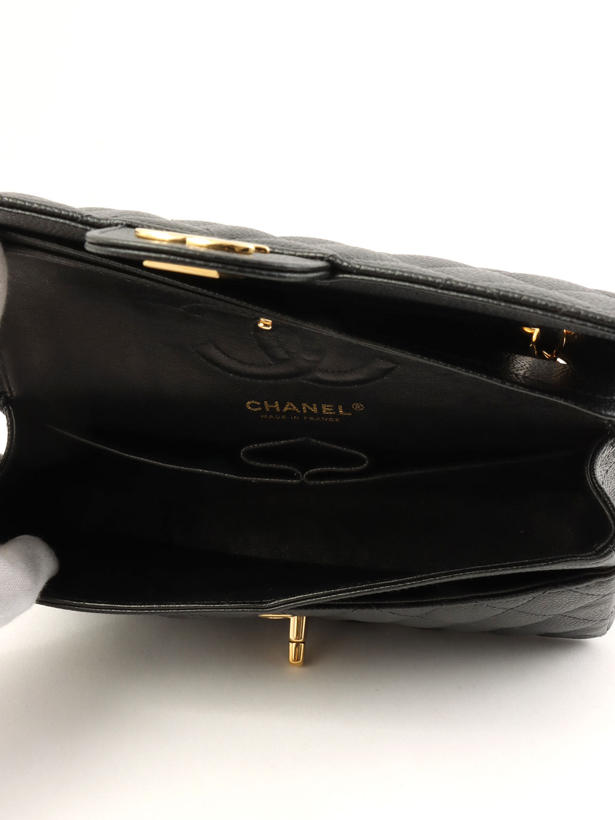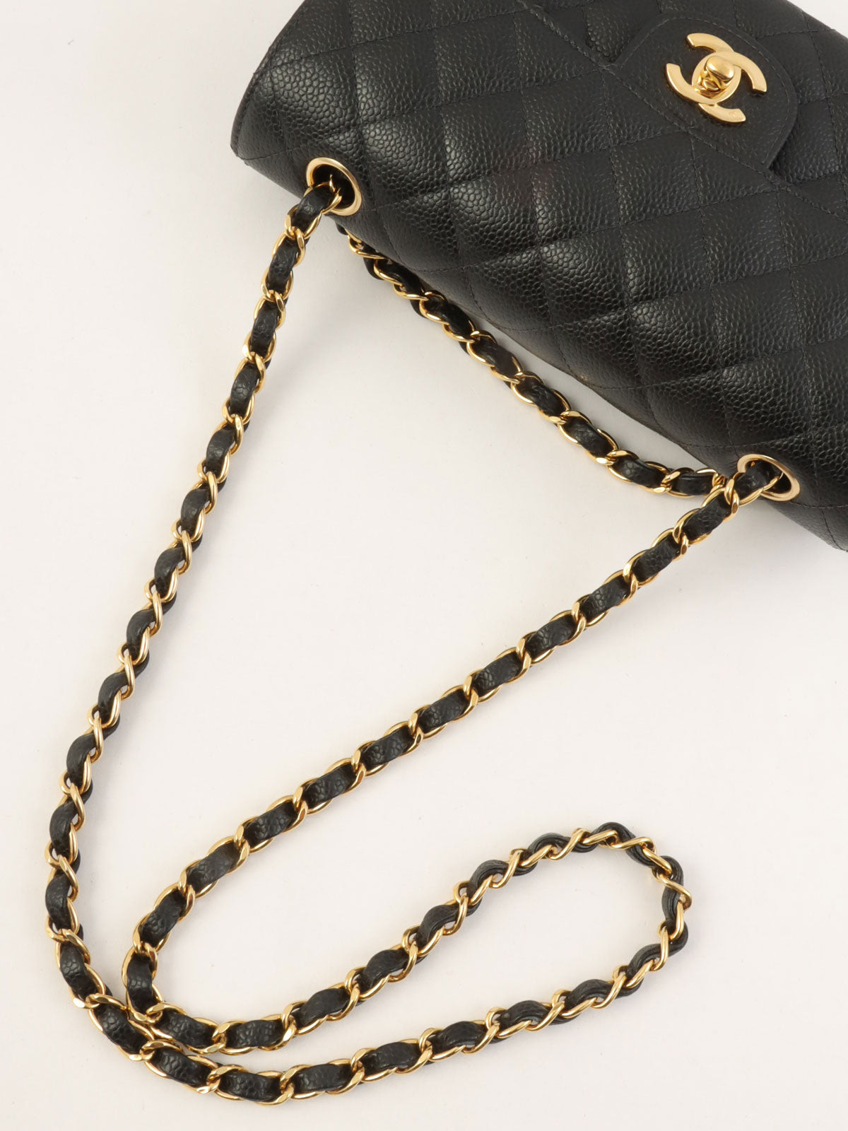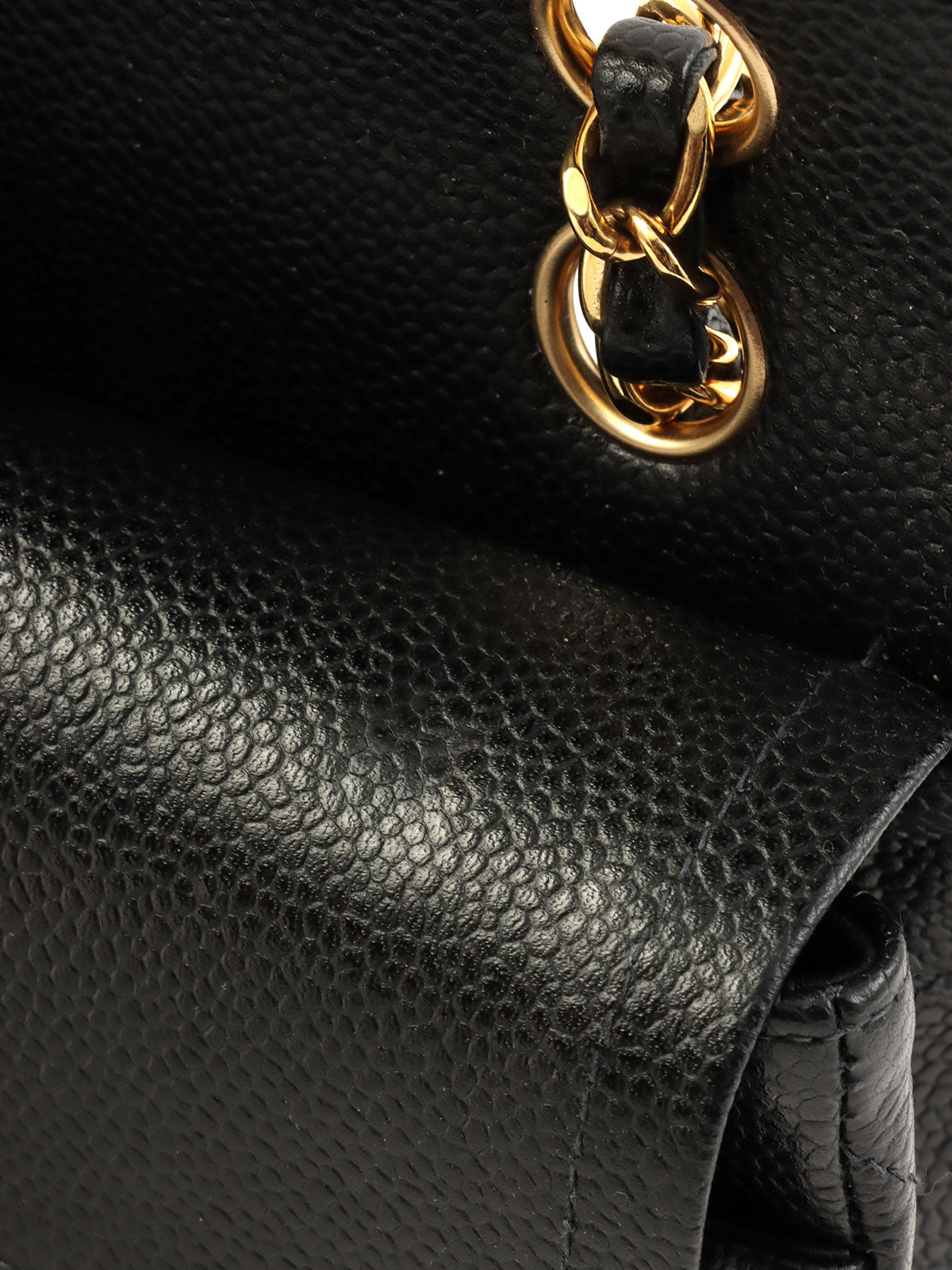 2004年鱼子酱纹经典翻盖链条包,23厘米,黑色