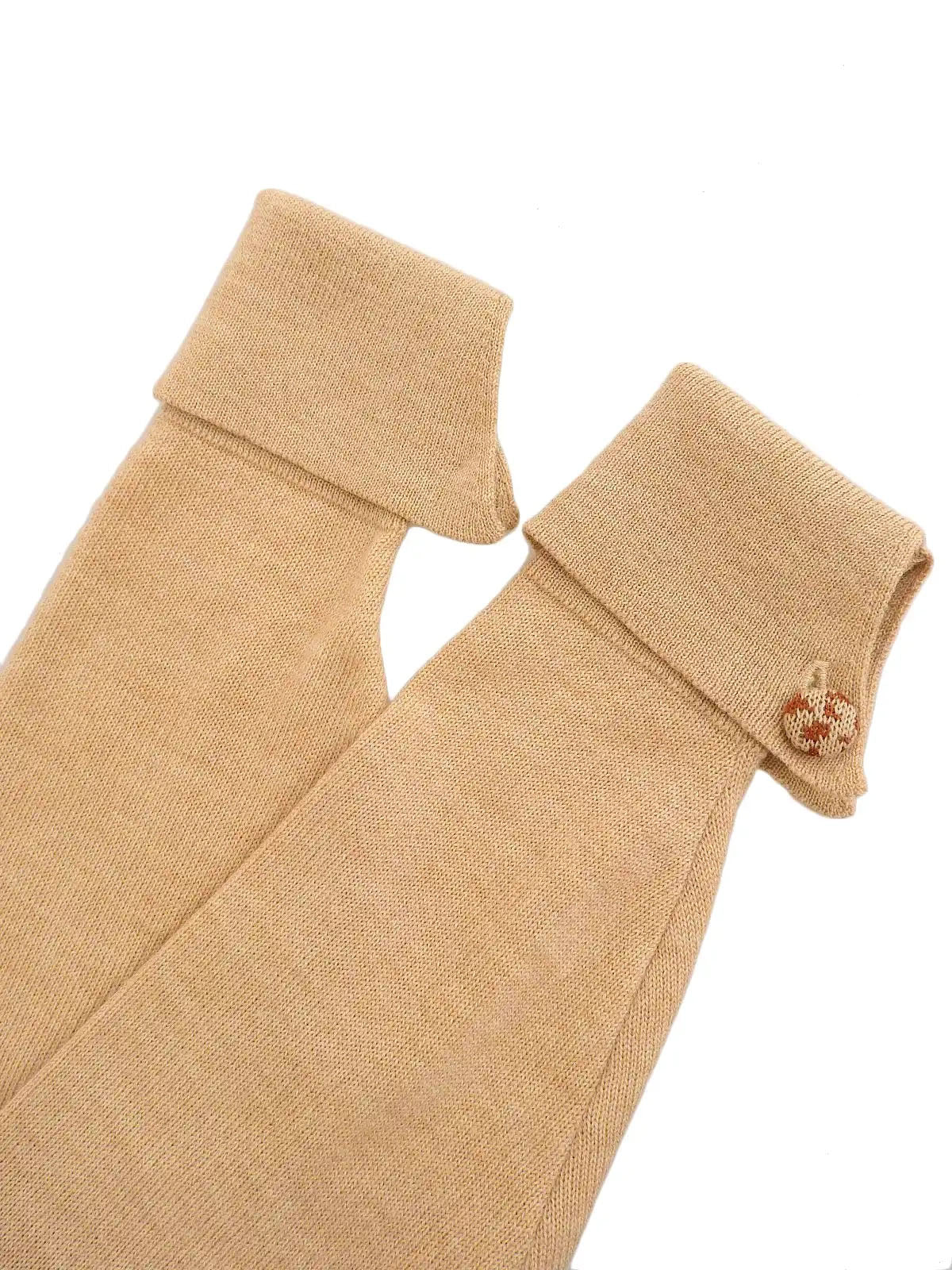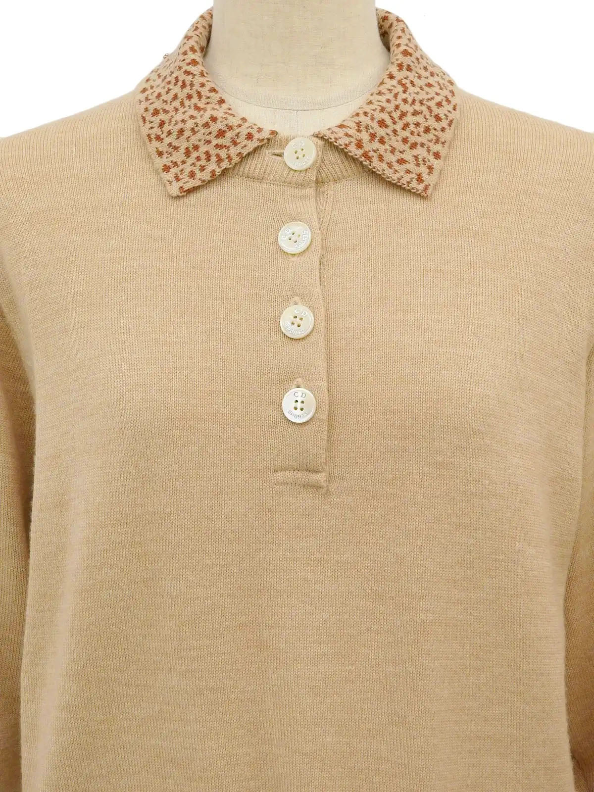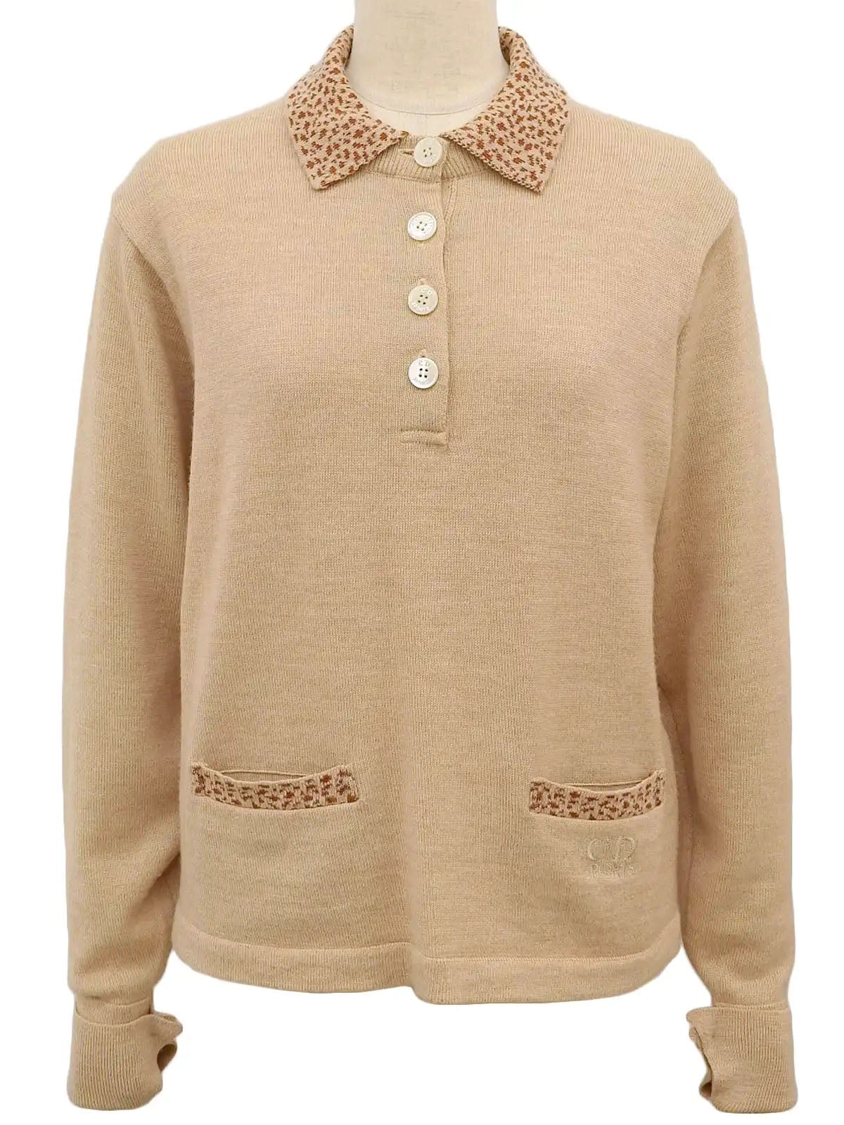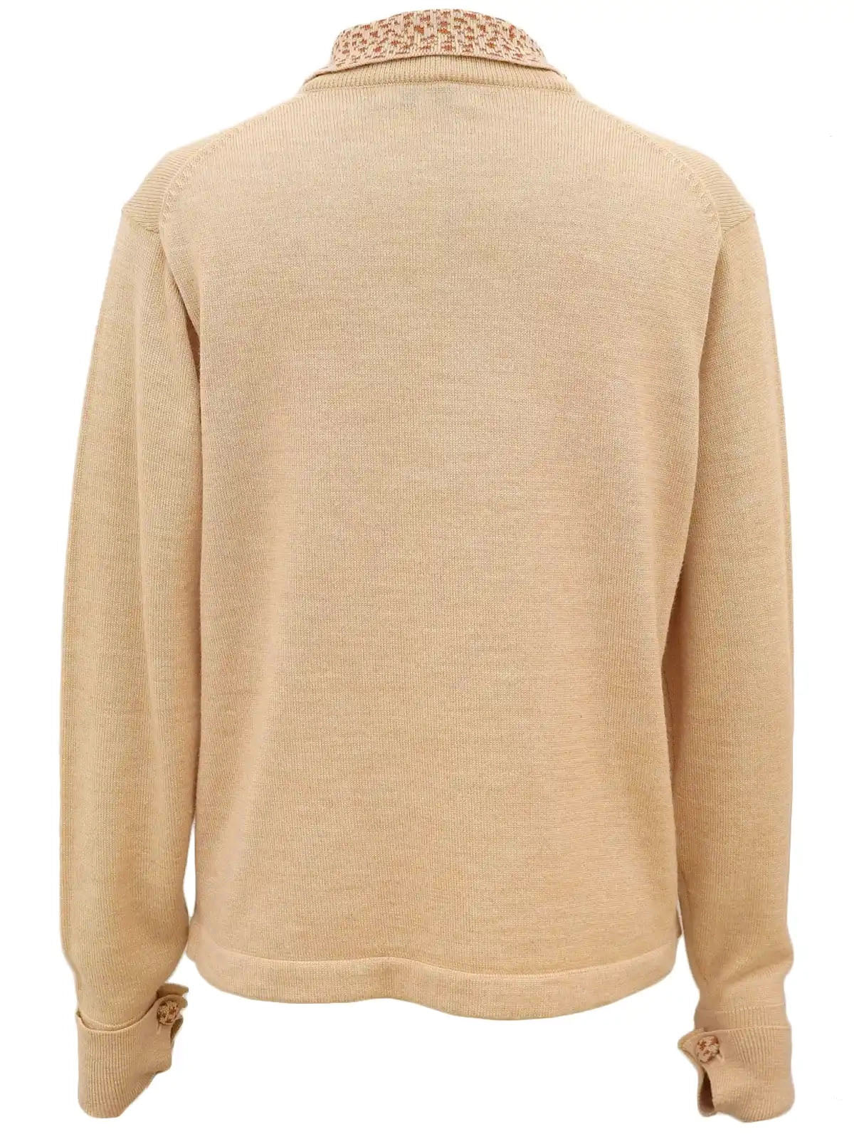米色/驼色徽标纽扣设计长袖针织上衣