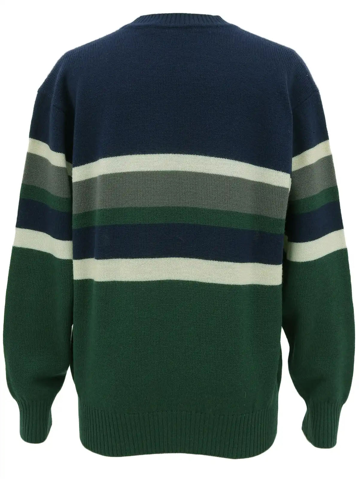 海军蓝/绿色边框图案徽标刺绣长袖针织上衣