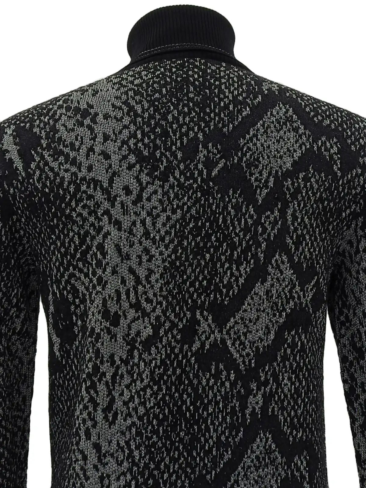 黑色/灰色设计图案高领针织上衣