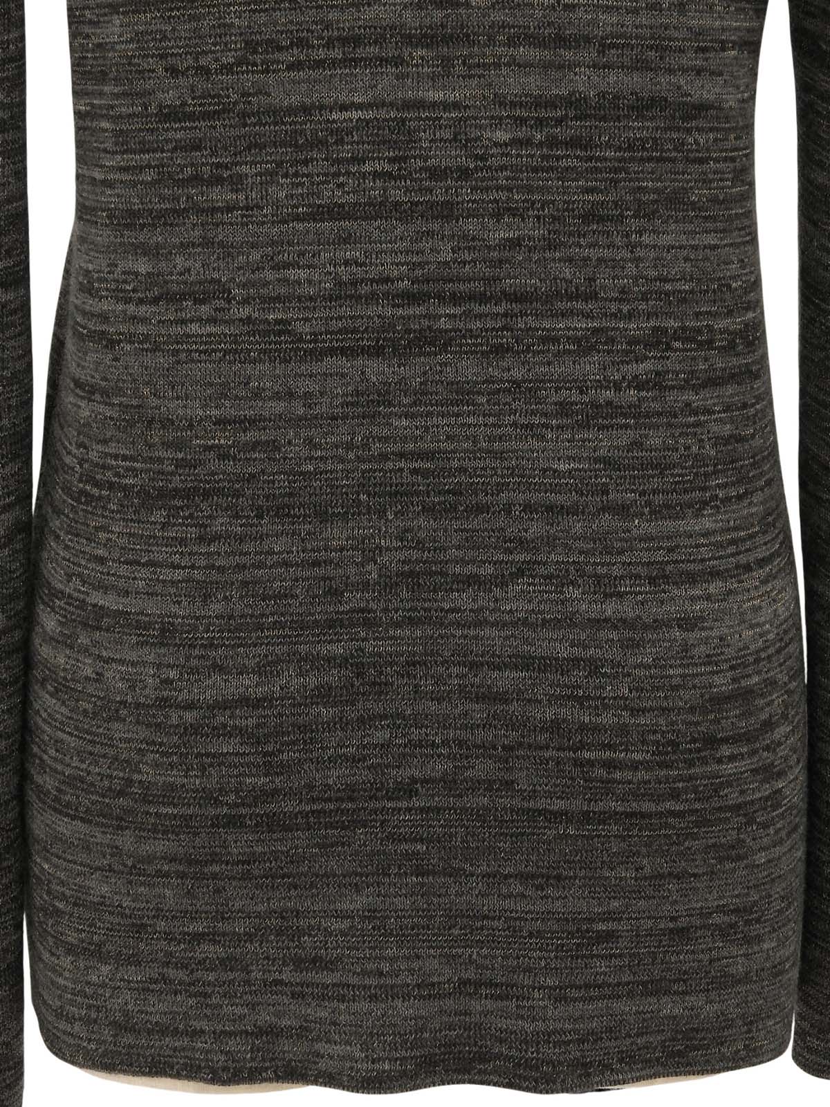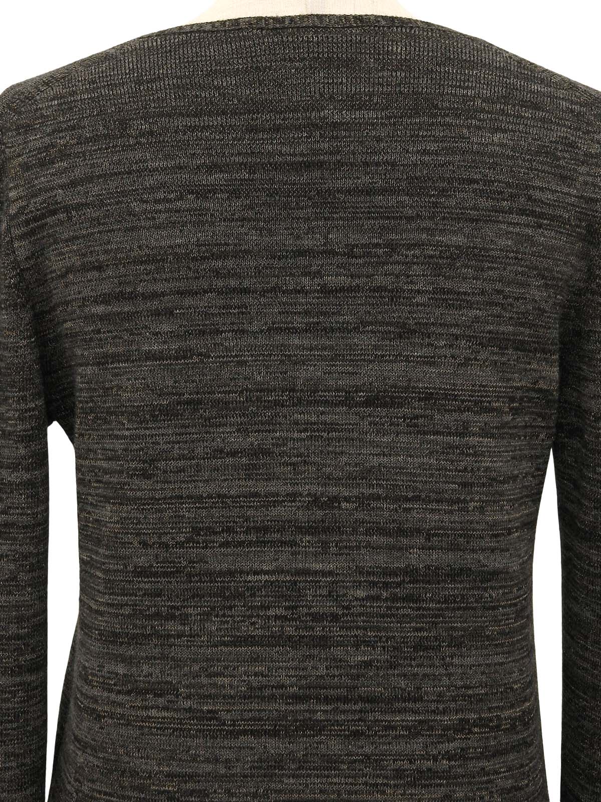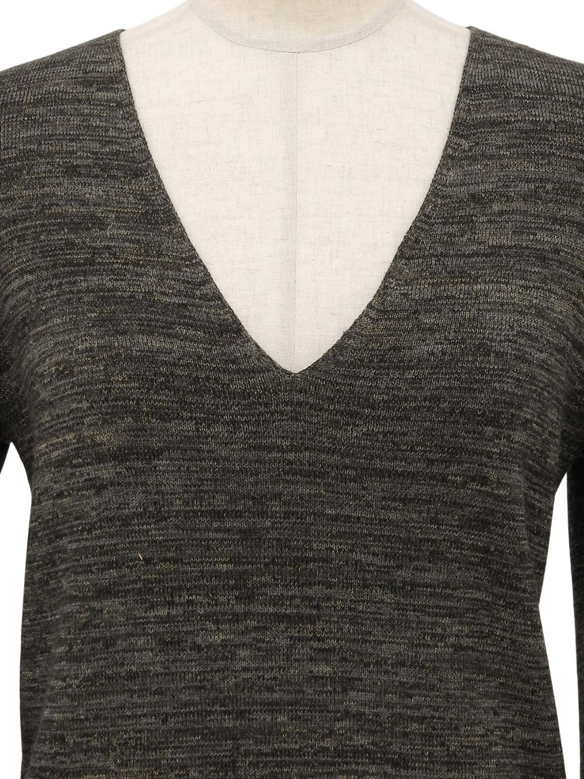 灰色V领针织衫,饰有品牌标志