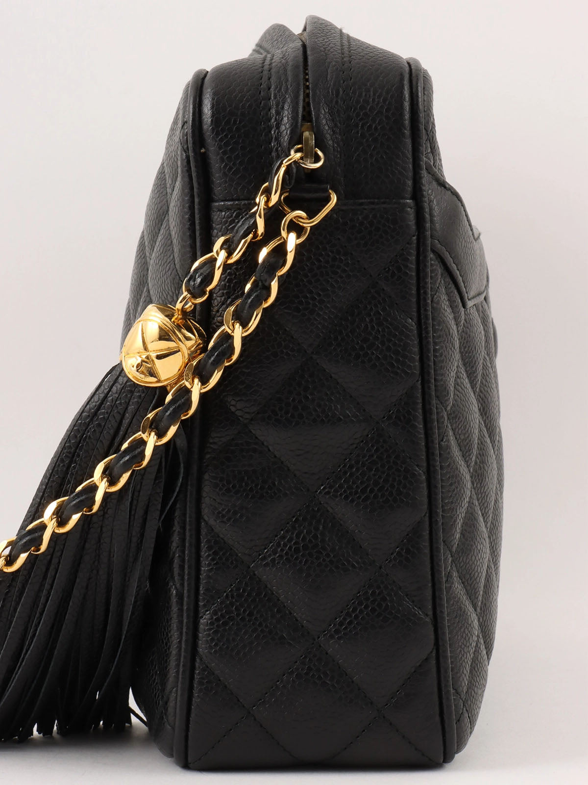 1992 Caviar Skin Matelasse CC Mark Stitch 流苏链条单肩包(黑色)