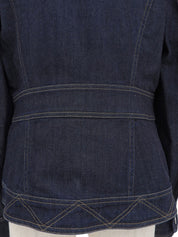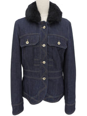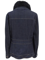 靛蓝色兔毛徽标纽扣牛仔夹克