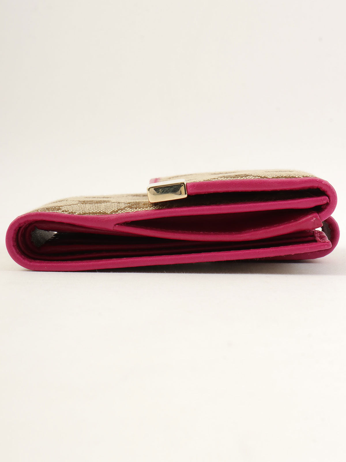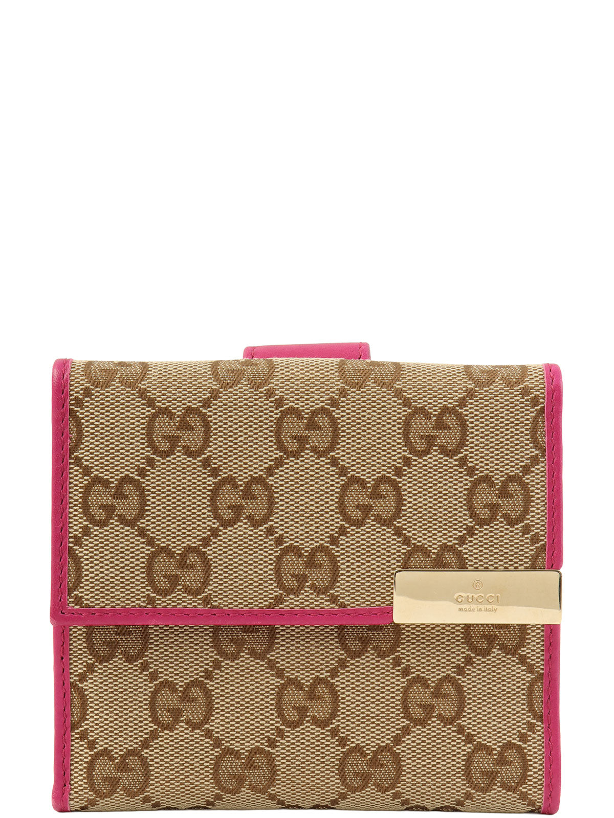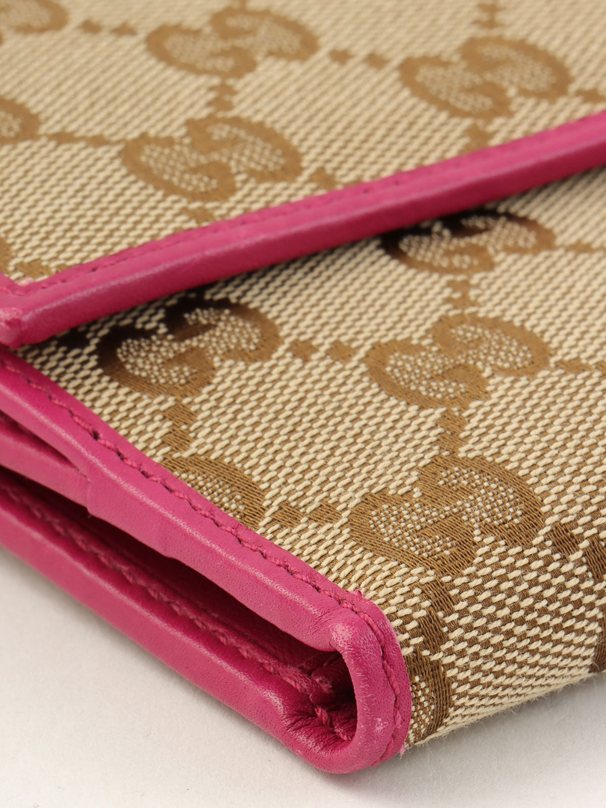 帆布 GG 图案迷你钱包 棕色/粉色