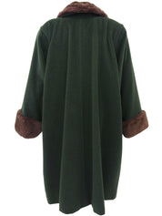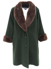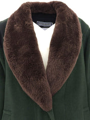 绿色/棕色海狸毛和羊毛混合长款大衣