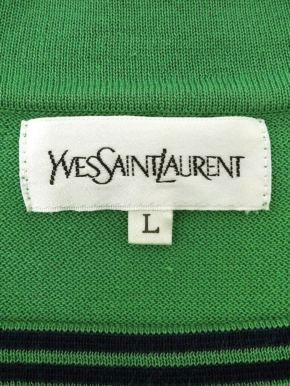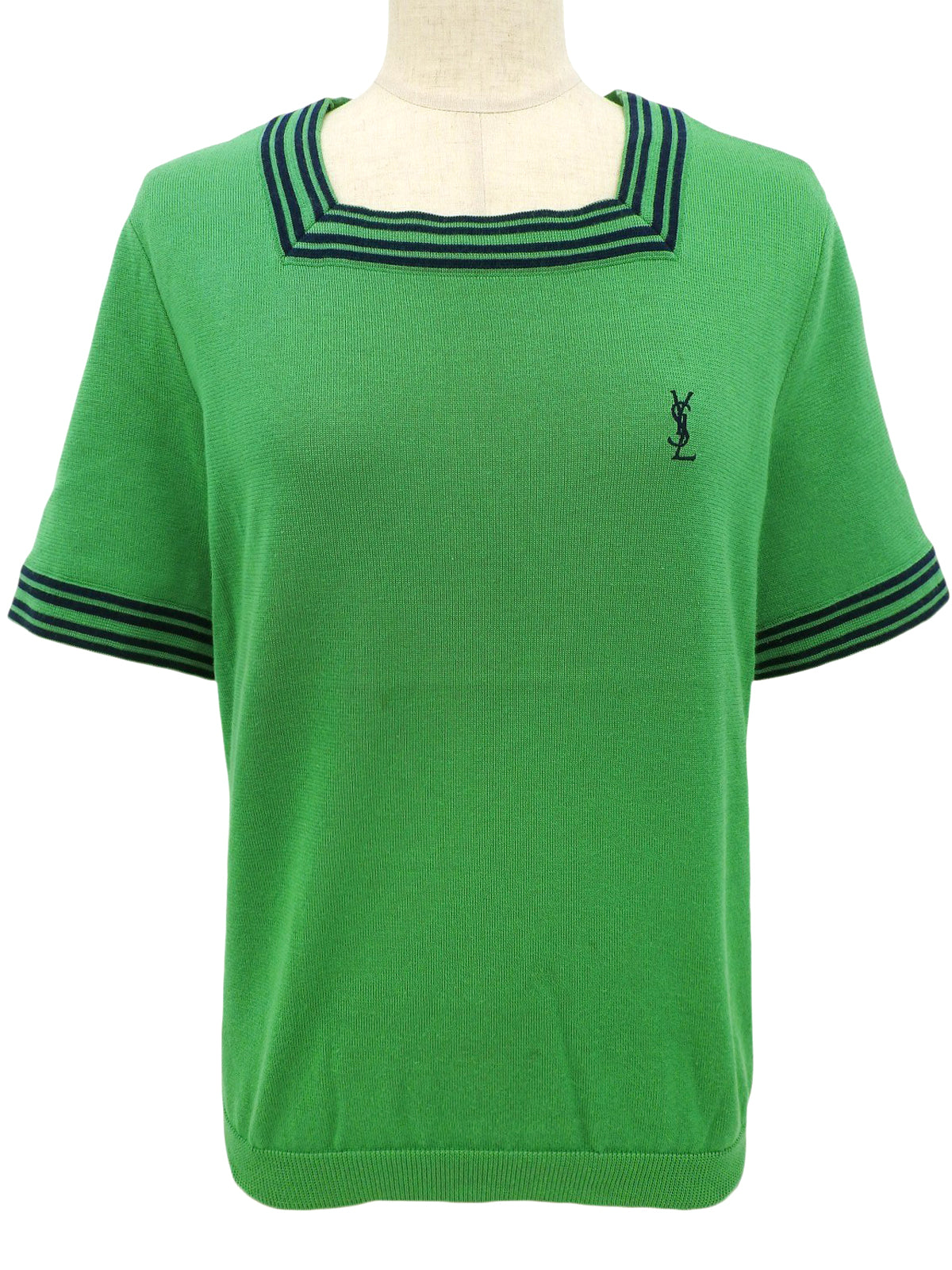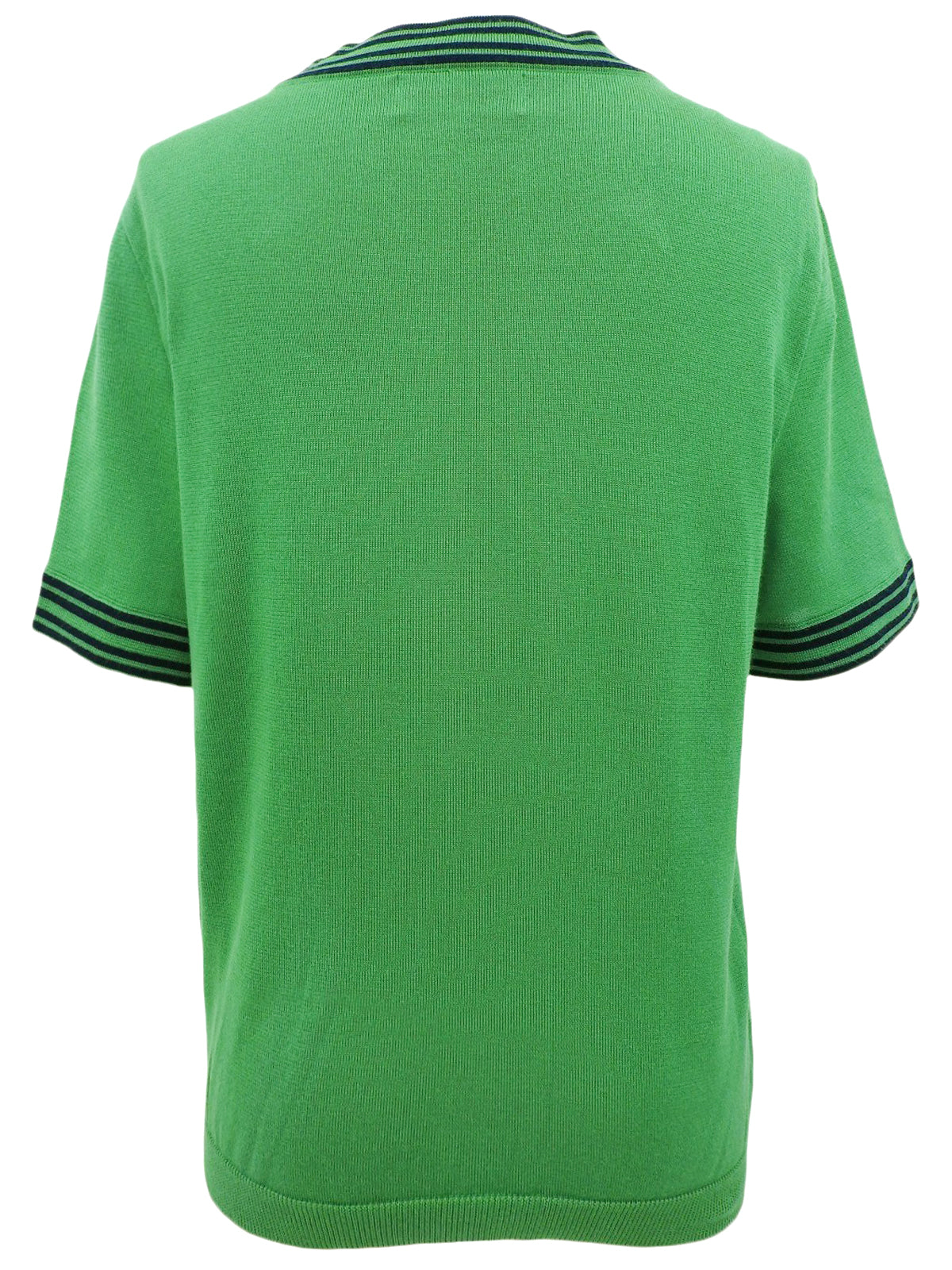 绿色/藏青色针织短袖上衣,饰有品牌标志刺绣。