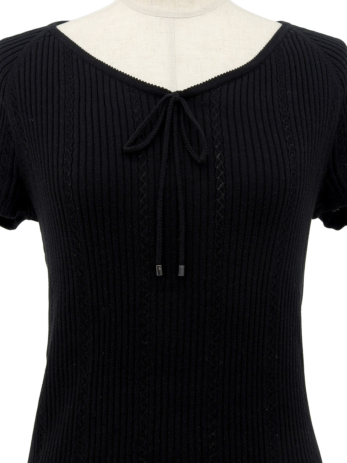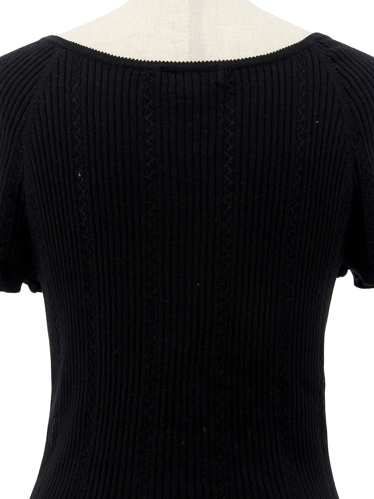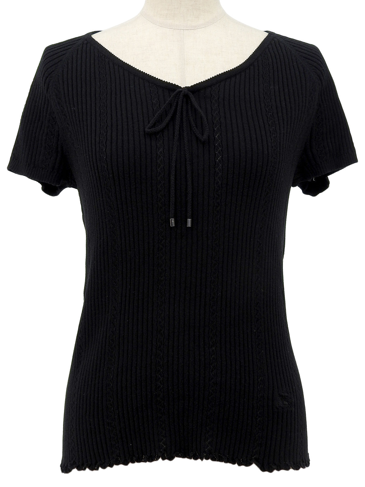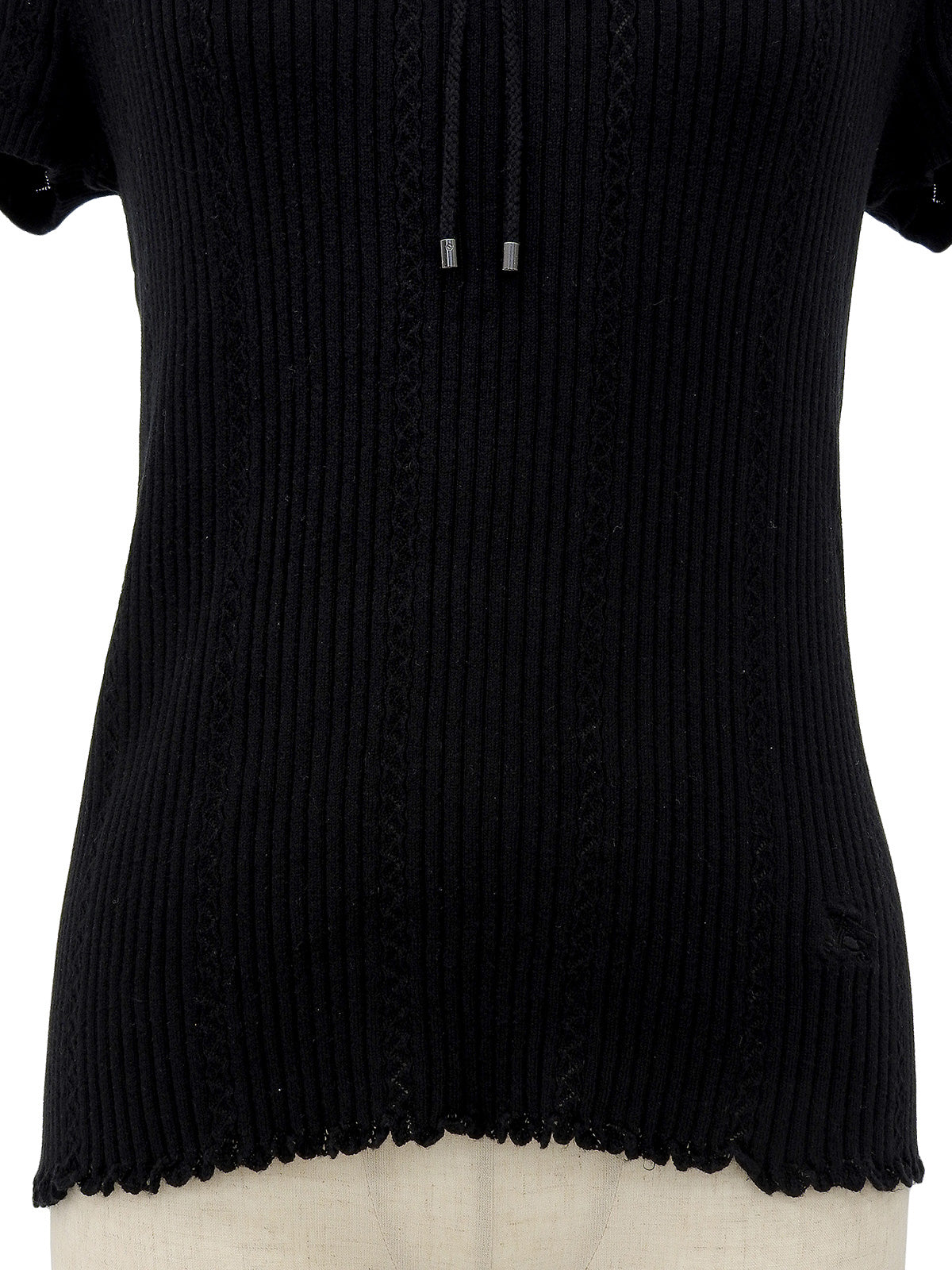 黑色刺绣Logo棉质短袖针织上衣