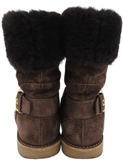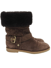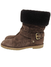 棕色字母图案羊皮靴