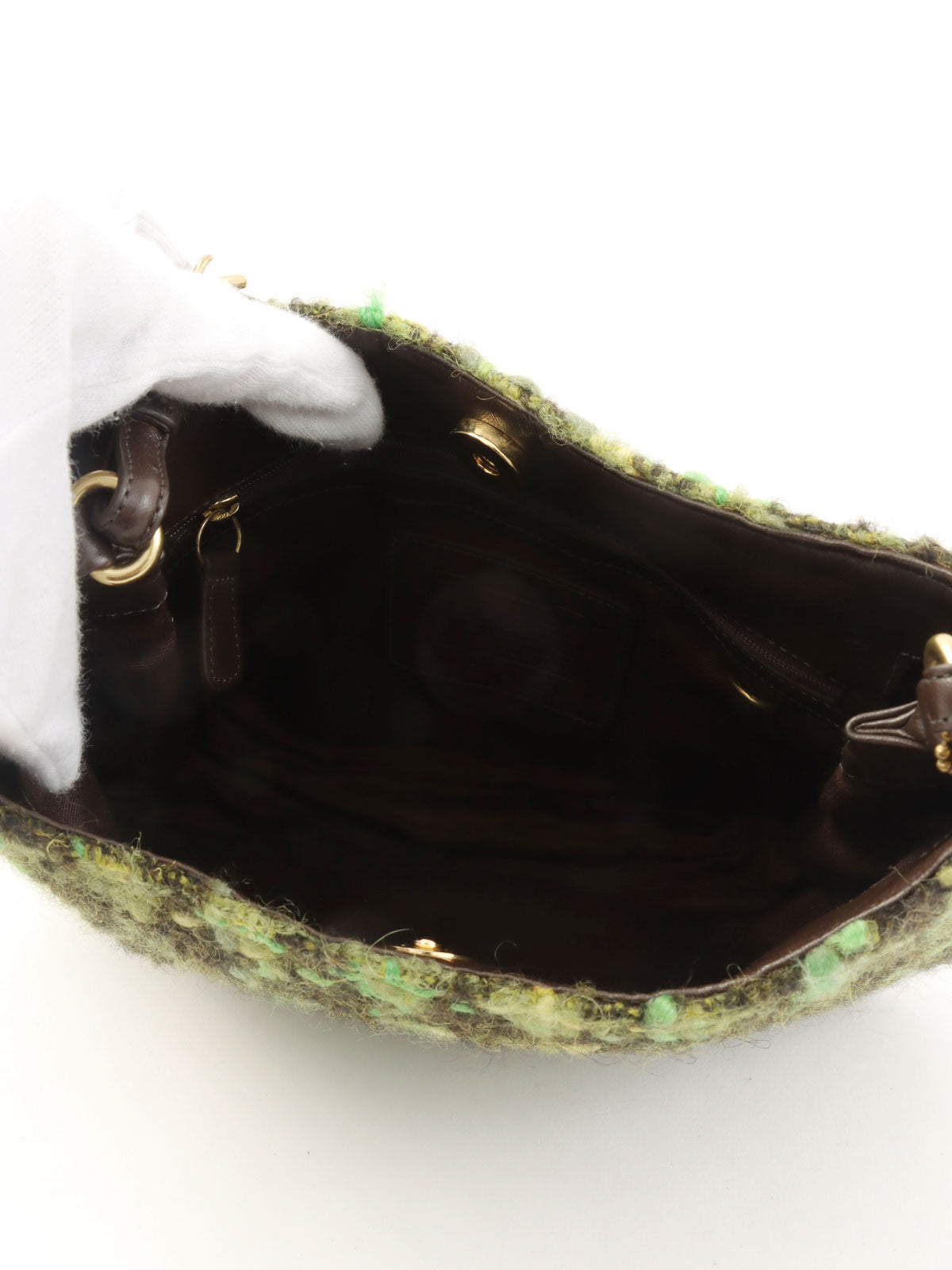 绿色/棕色斜纹软呢皮革组合logo吊饰单肩包
