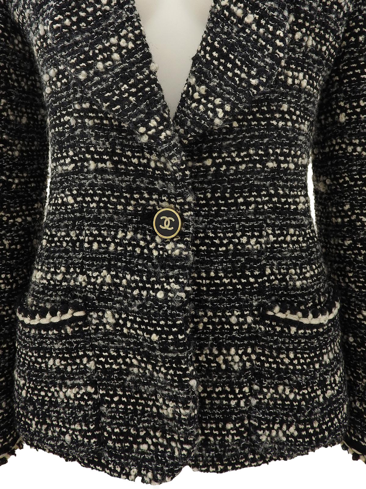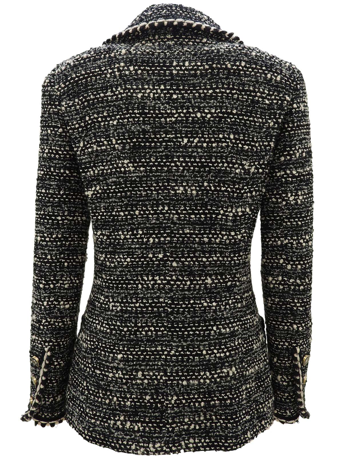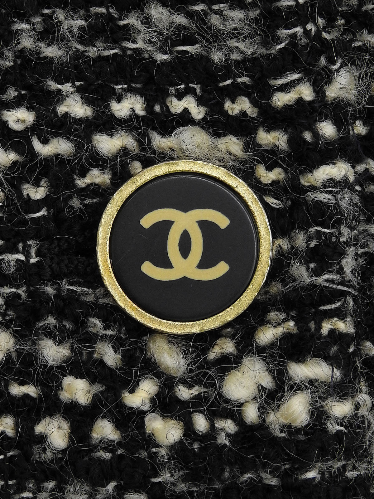 黑色/白色斜纹软呢CC标志纽扣夹克
