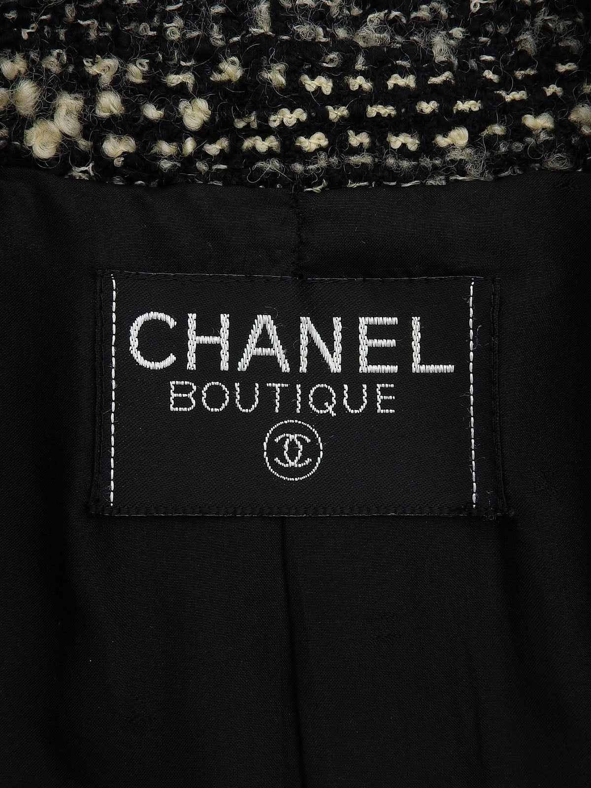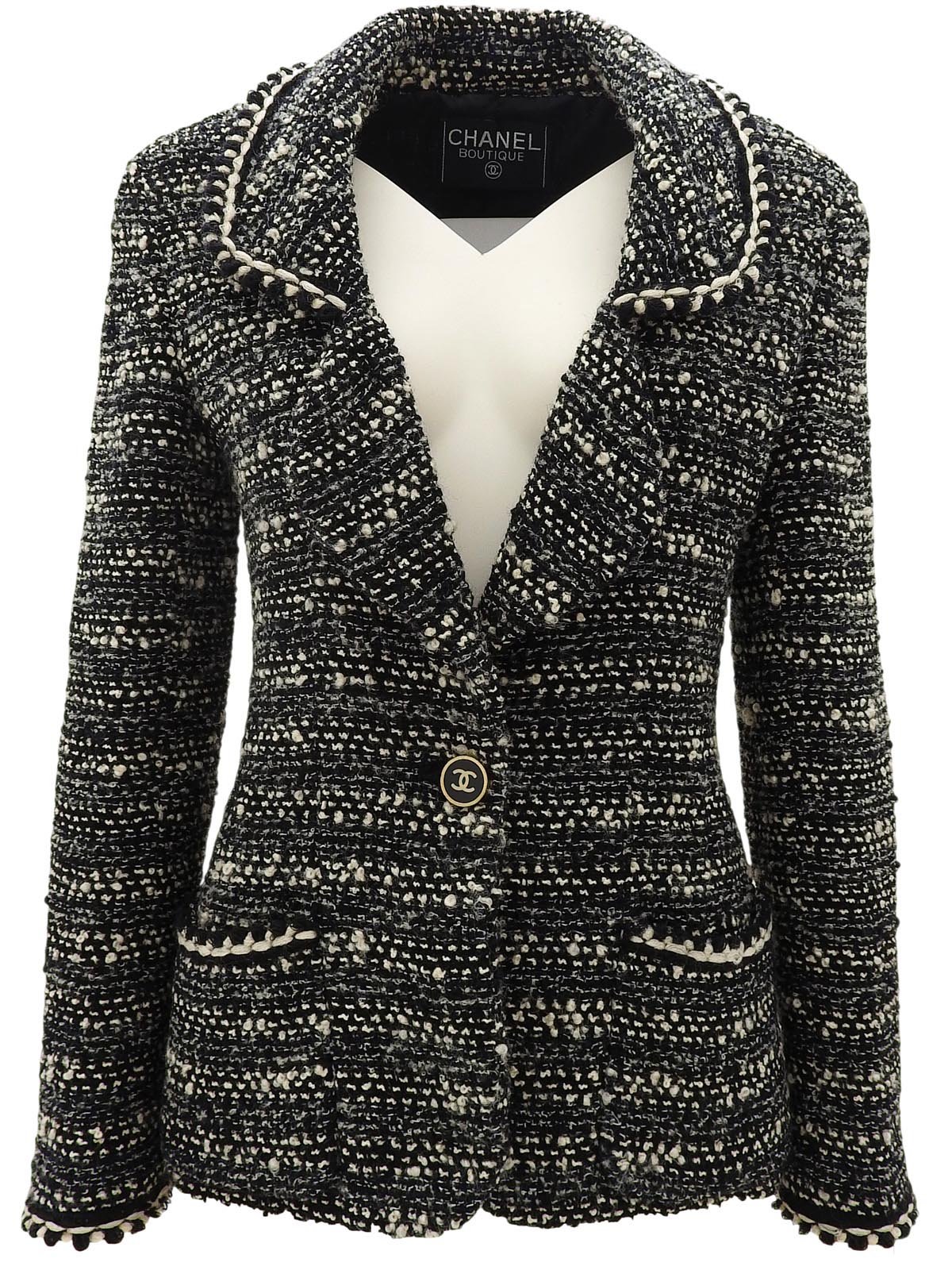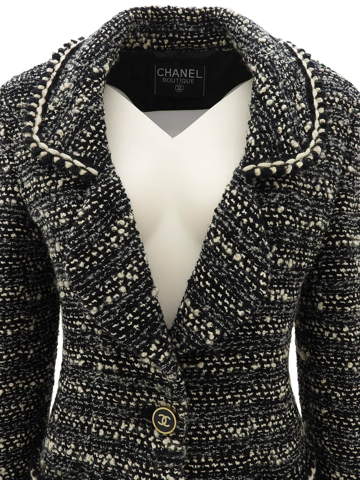 黑色/白色斜纹软呢CC标志纽扣夹克